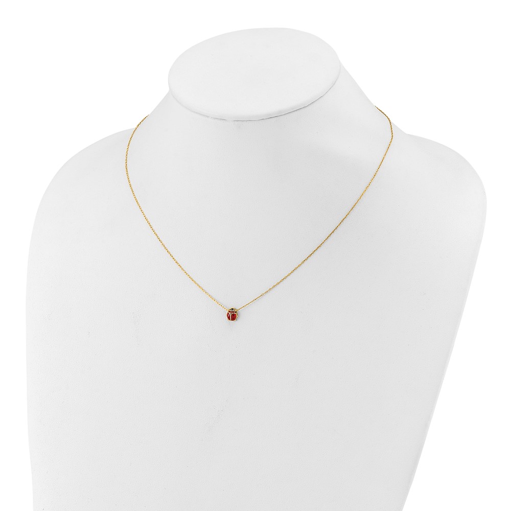 14k Polished Red and Black Enameled Ladybug 17 inch Necklace Plus 1 inch Extender