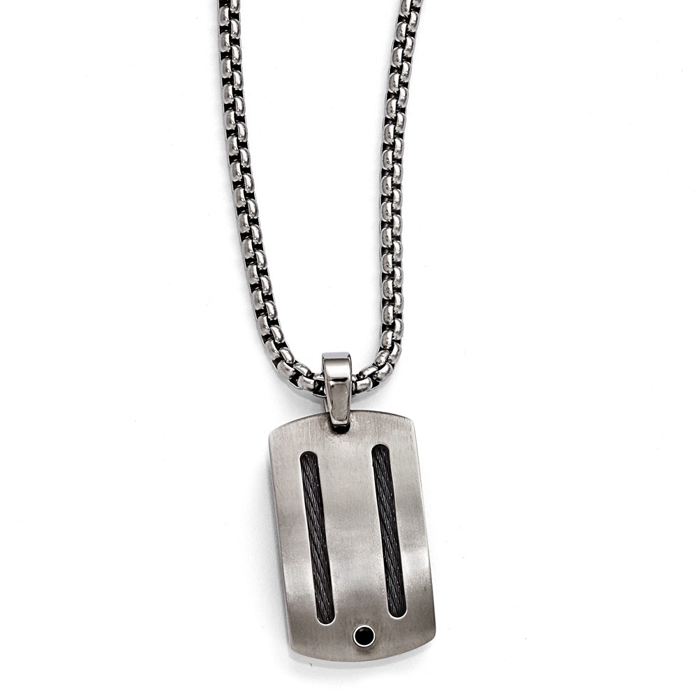Edward Mirell Titanium Blk Cable & BlackSpinel w/Argentium SS Bezel Necklac