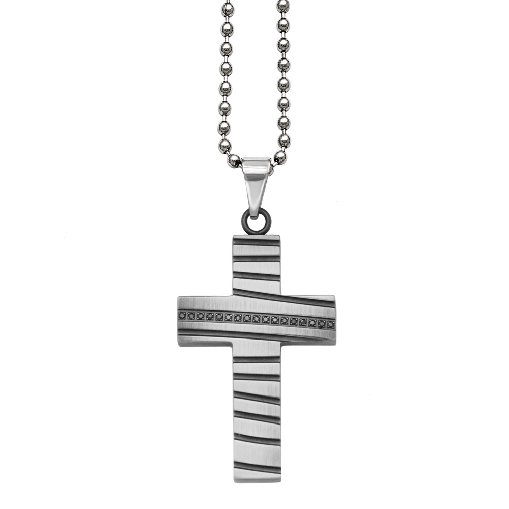 Stainless Steel Black IP .15 TCW Black Diamond Cross Pendant on 2.4 mm Bead