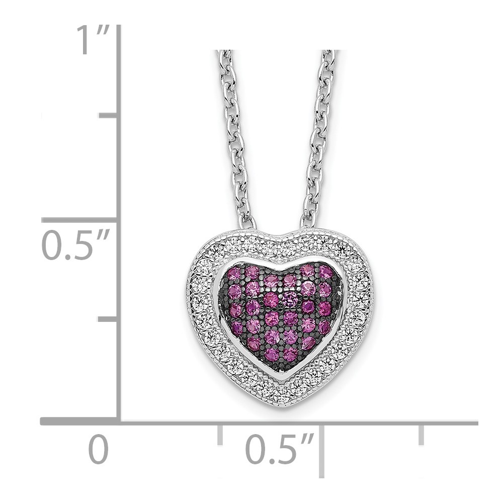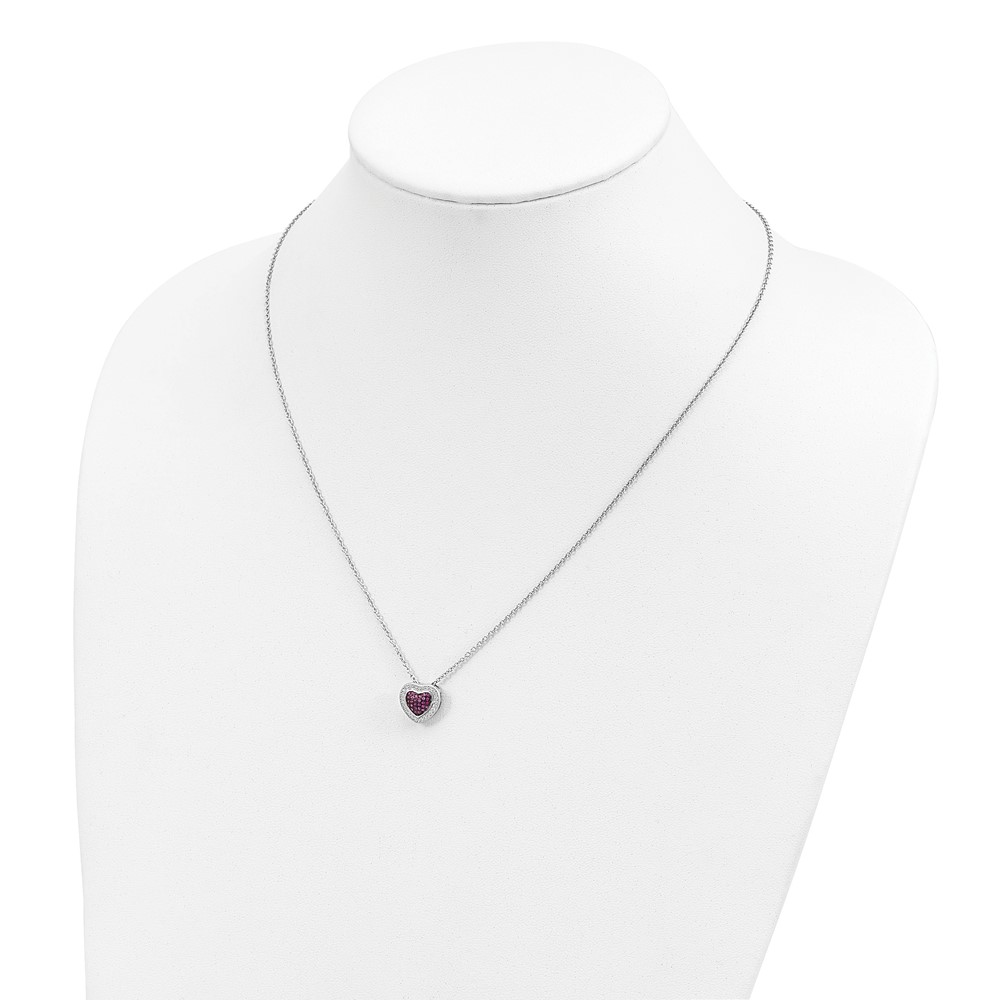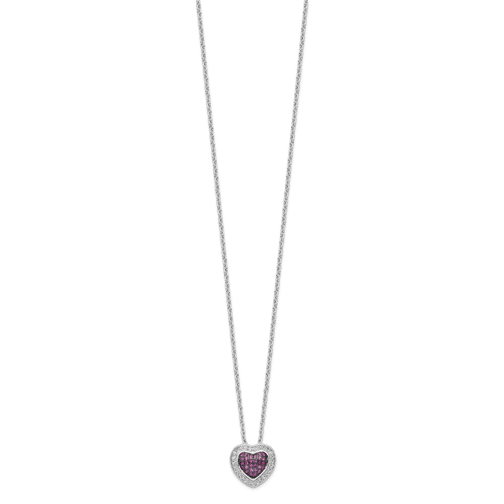 Brilliant Embers Sterling Silver Rhodium-plated 112 Stone 18 inch with 2 inch extender Lobster Clasp Micro Pavé Red and White CZ Heart Necklace with 2 Inch Extender