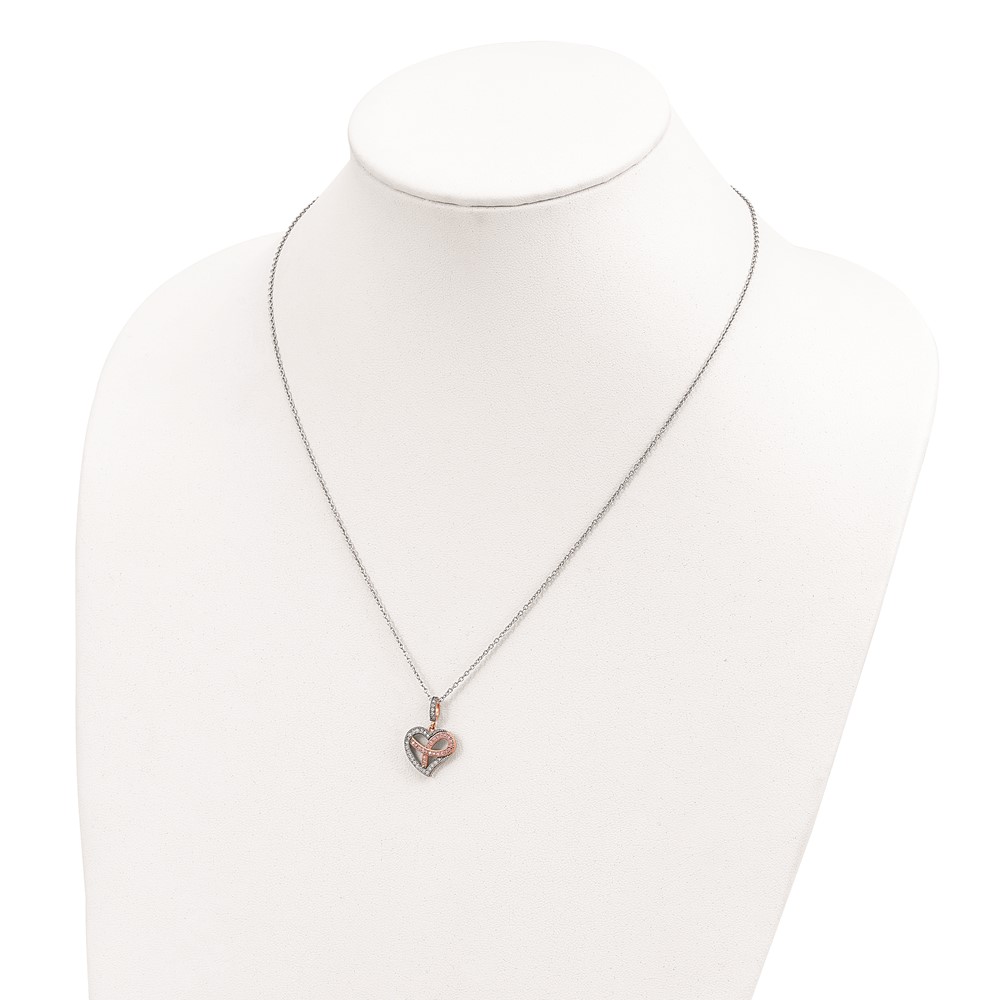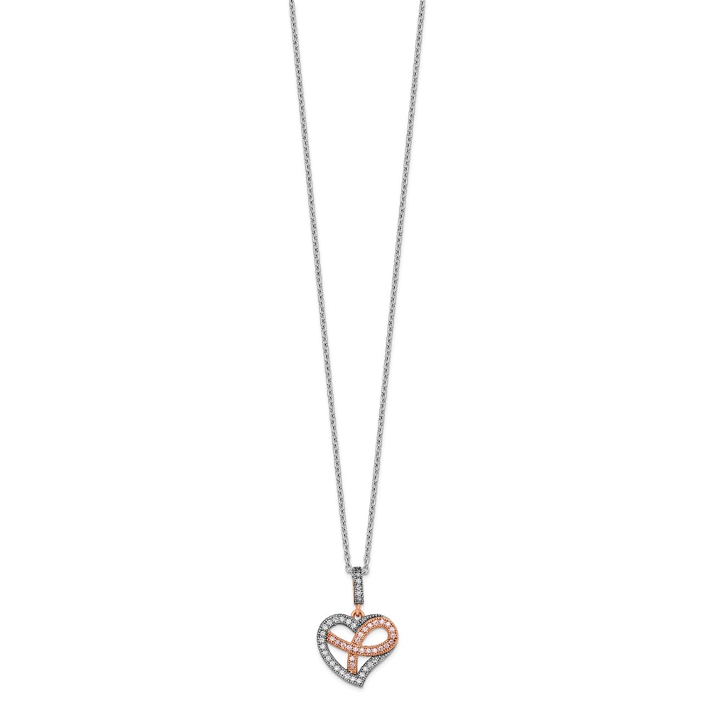 Brilliant Embers Sterling Silver Rose Gold-plated Rhodium-plated 49 Stone 18 inch Micro Pavé CZ Polished Heart Necklace with 2 Inch Extender