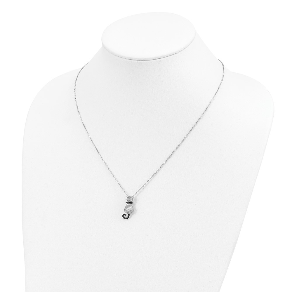 Brilliant Embers Sterling Silver Rhodium-plated 80 Stone 18 inch Micro Pavé Black and White CZ Polished Cat Necklace with 2 Inch Extender