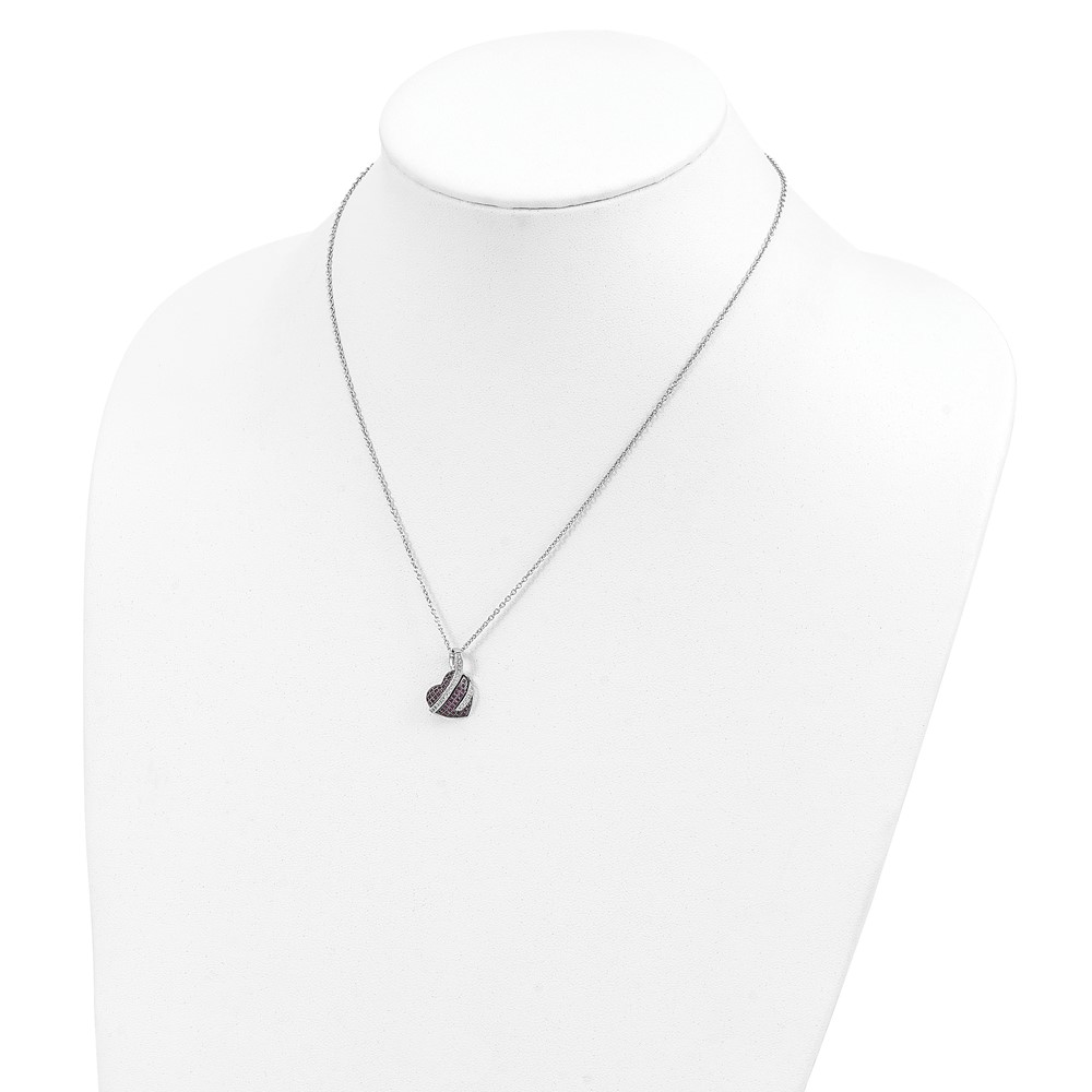 Brilliant Embers Sterling Silver Rhodium-plated 68 Stone 18 inch Micro Pavé Pink and White CZ Heart Necklace with 2 Inch Extender