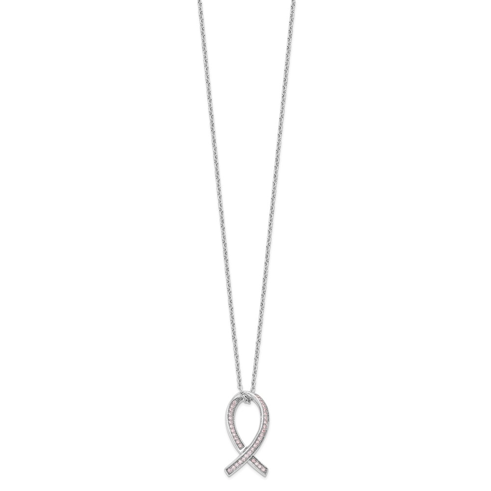 Brilliant Embers Sterling Silver Rhodium-plated 38 Stone 18 inch Micro Pavé Pink CZ Awareness Ribbon Necklace with 2 Inch Extender