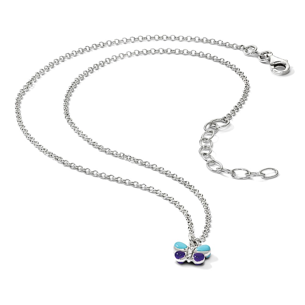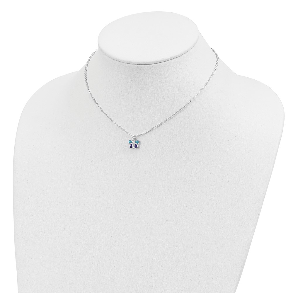 Sterling Silver Polished Blue & Purple Enameled Butterfly with 1.5inch Extension Children's Necklace