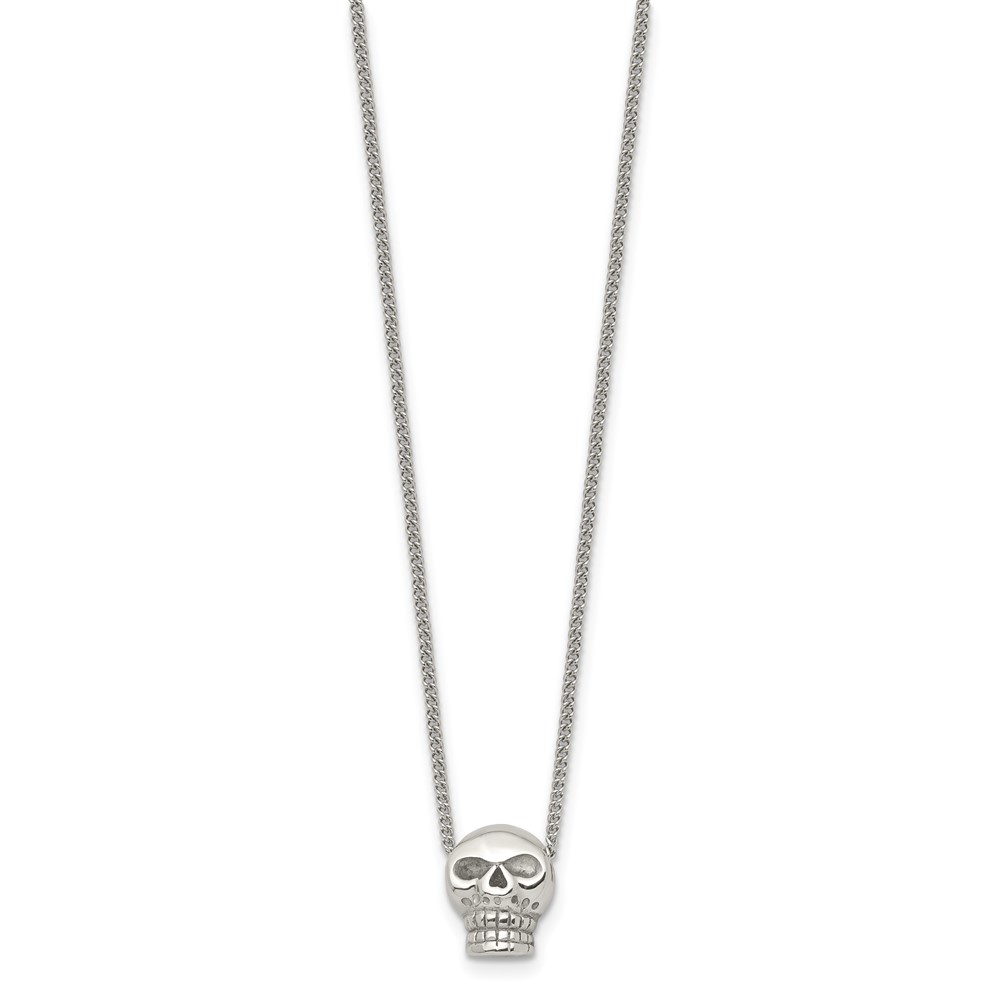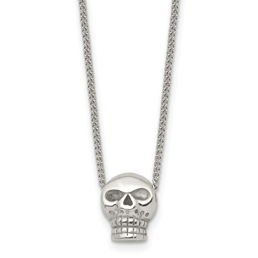 Stainless Steel Polished Skull 16in Necklace