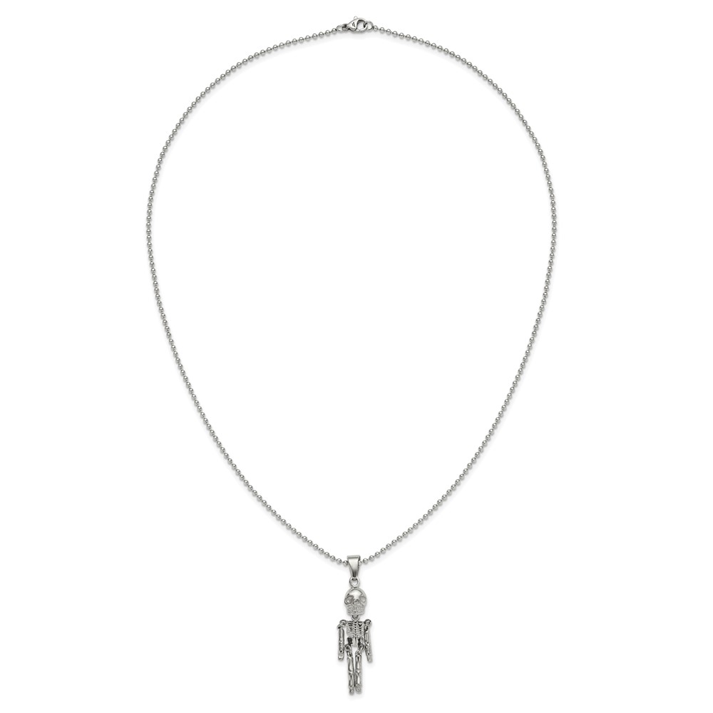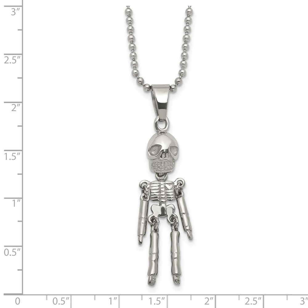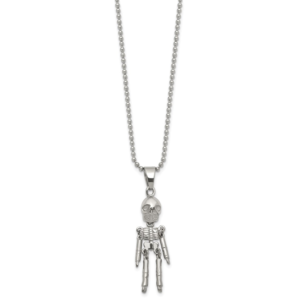 Chisel Stainless Steel Polished Moveable Skeleton Pendant on a 22 inch Ball Chain Necklace