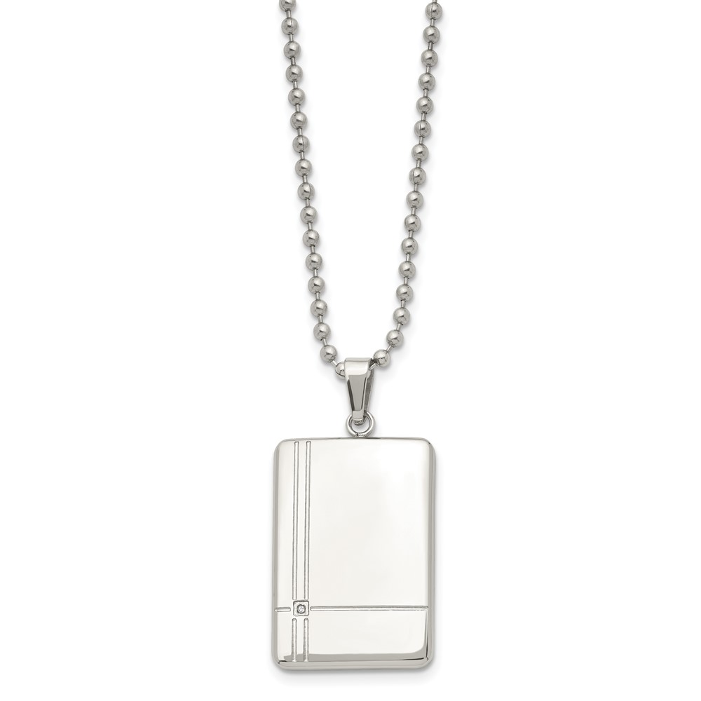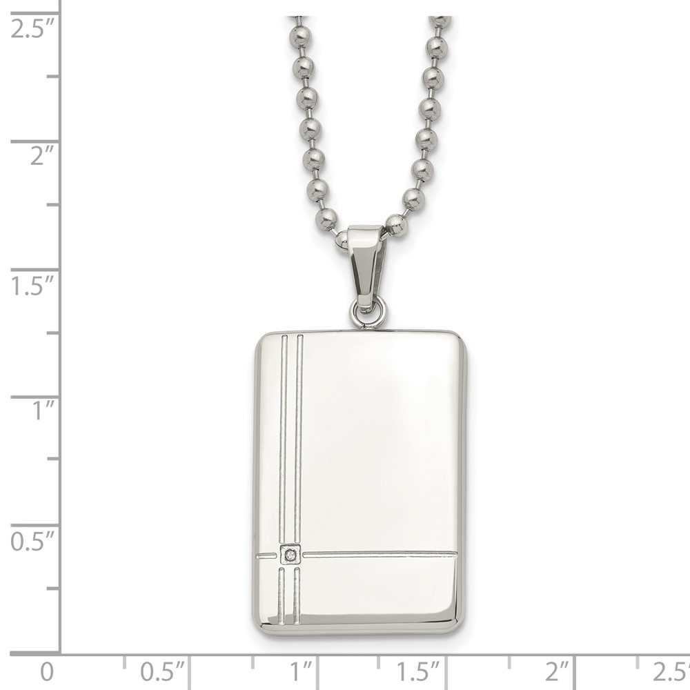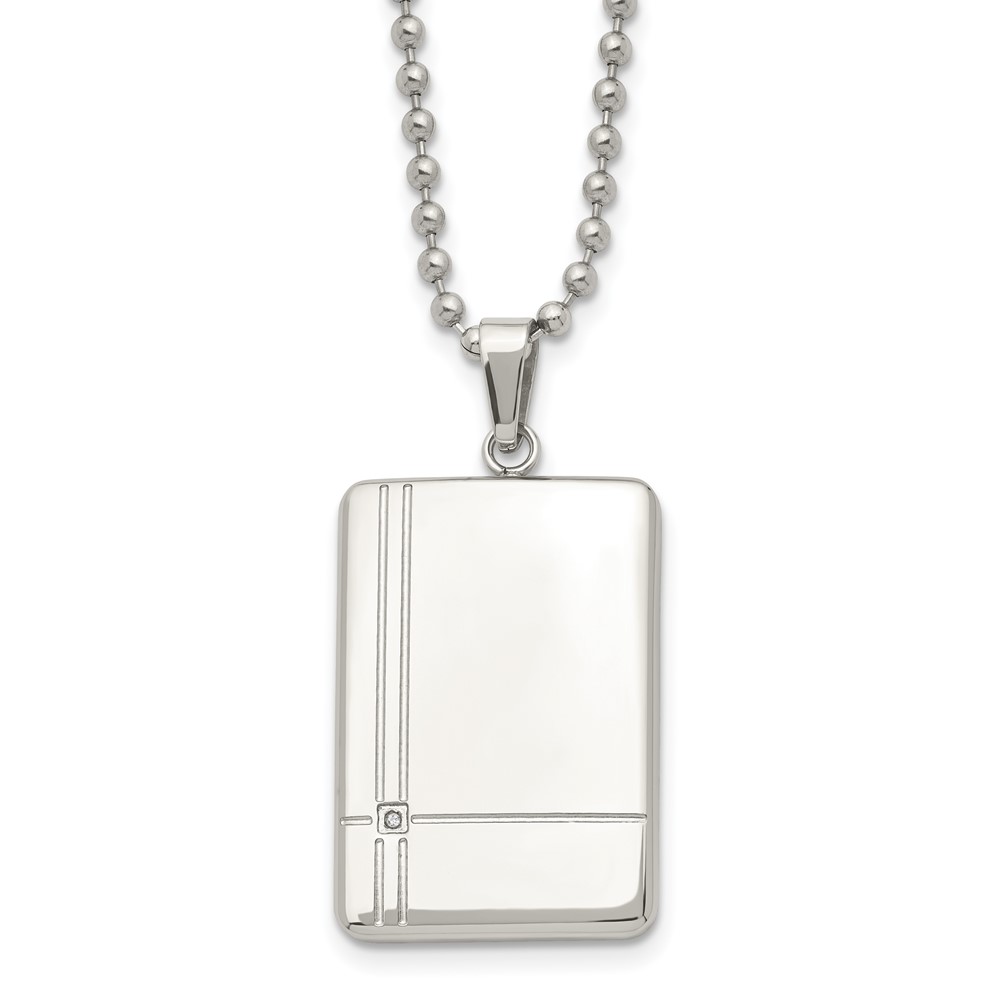 Chisel Stainless Steel Polished with CZ Dog Tag on a 22 inch Ball Chain Necklace