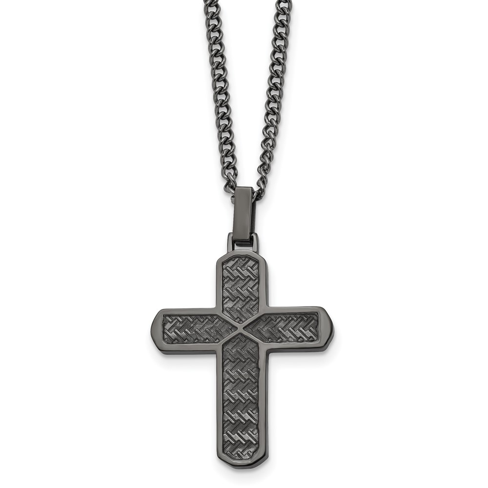 Chisel Stainless Steel Polished and Textured Gun Metal IP-plated Cross Pendant on a 22 inch Curb Chain Necklace