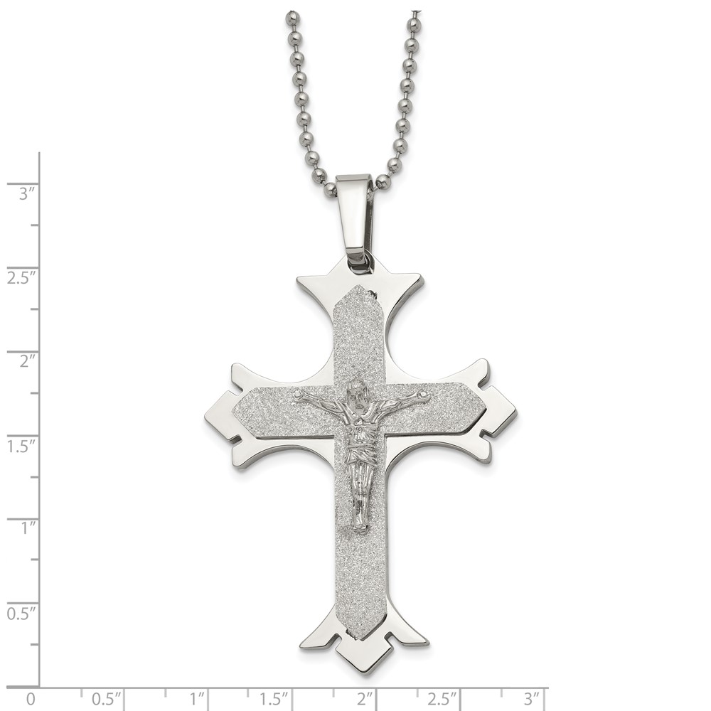 Chisel Stainless Steel Polished Laser Cut Crucifix Pendant on a 22 inch Ball Chain Necklace