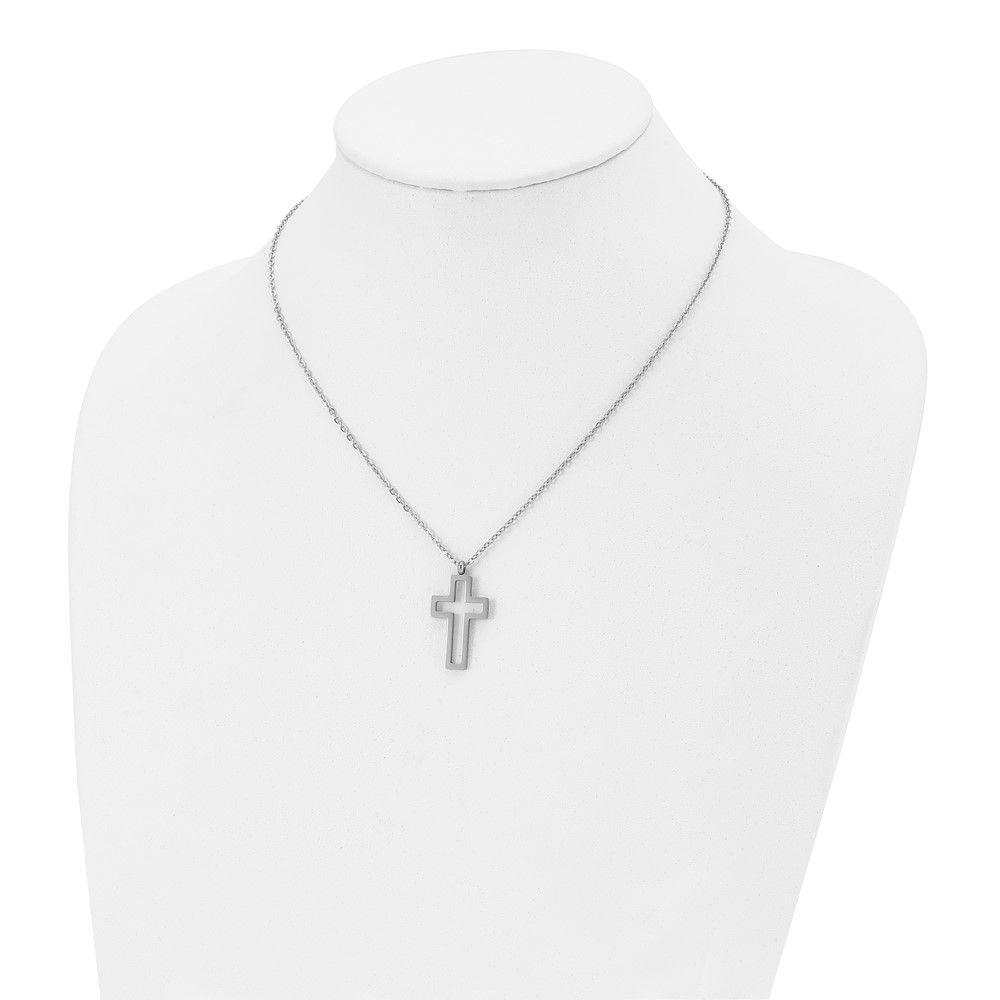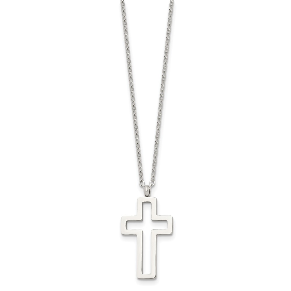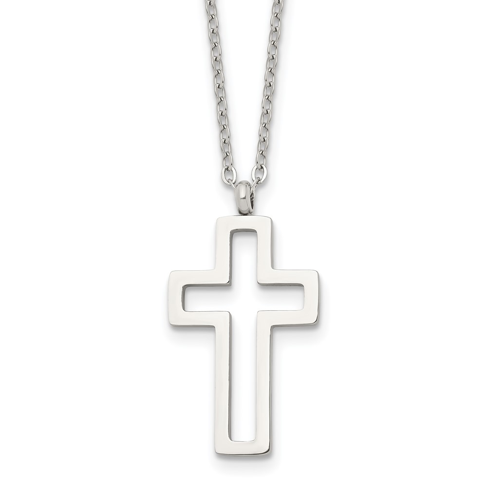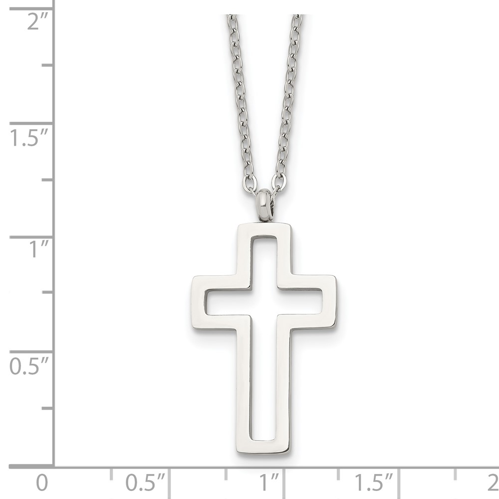 Chisel Stainless Steel Polished Cut-out Cross Pendant on a 17.5 inch Cable Chain Necklace