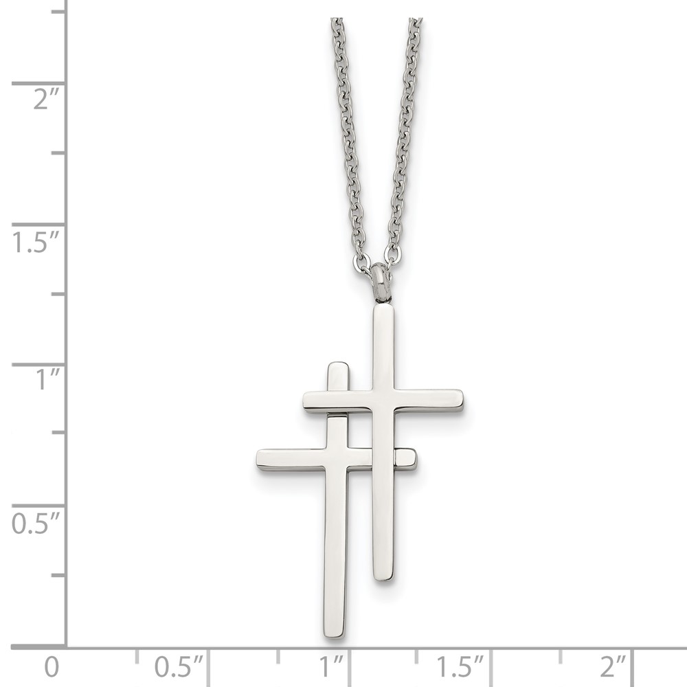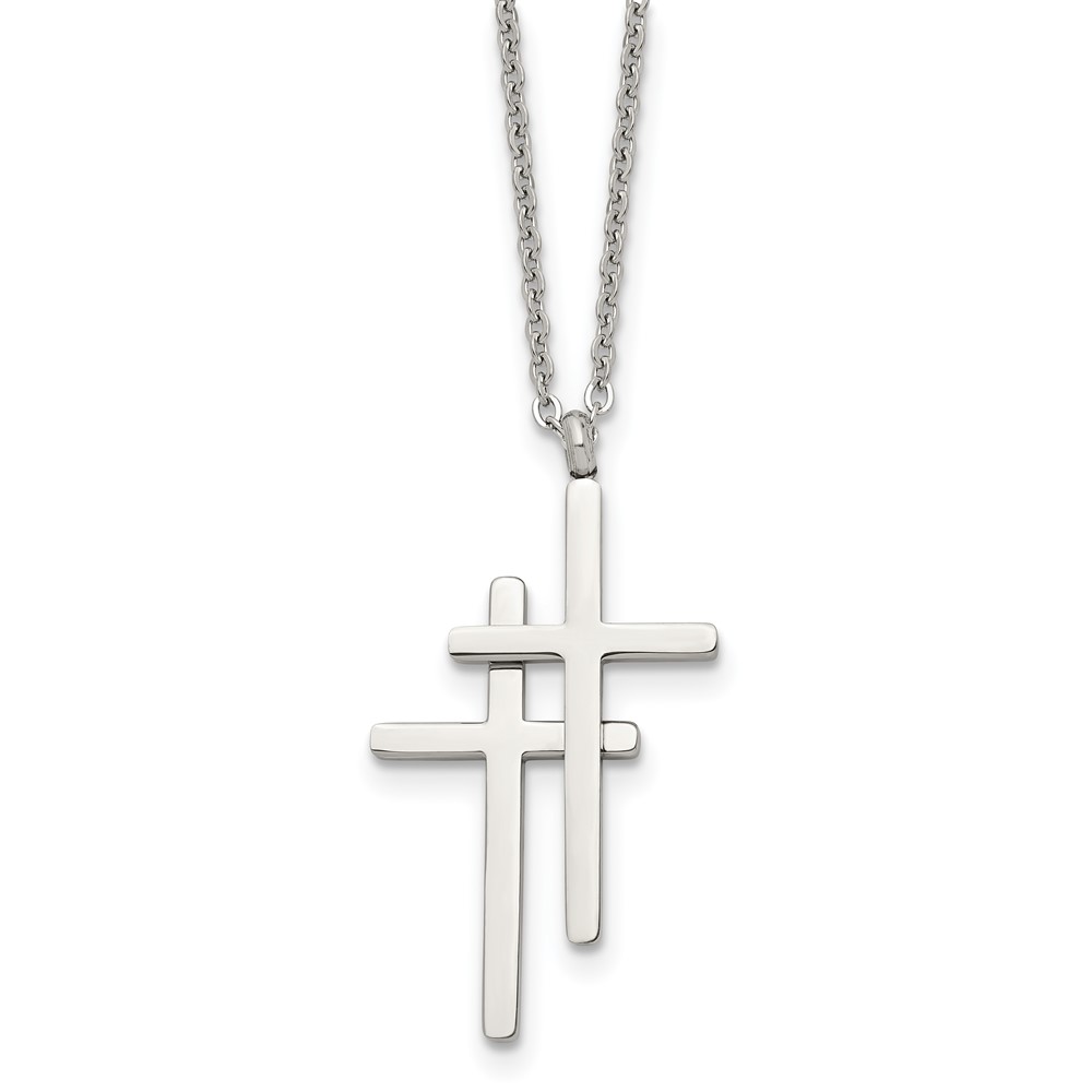 Stainless Steel Polished Double Cross 18in Necklace