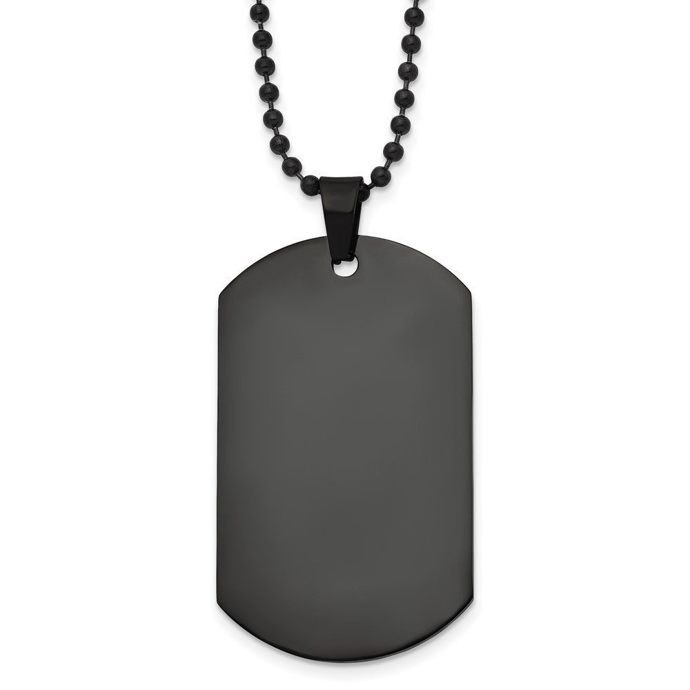 Chisel Stainless Steel Polished Black IP-plated Dog Tag on a 20 inch Ball Chain Necklace