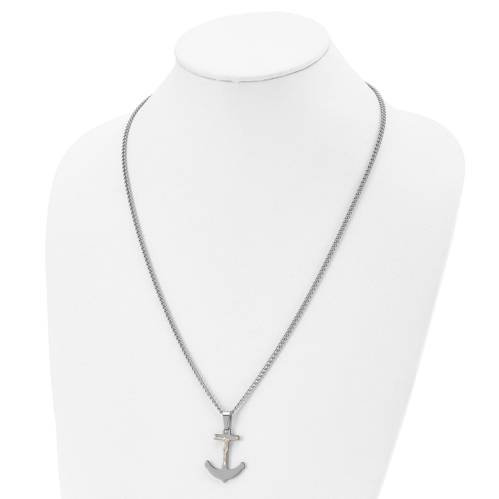 Chisel Stainless Steel Polished with 14k Gold Crucifix Anchor Pendant on a 24 inch Curb Chain Necklace