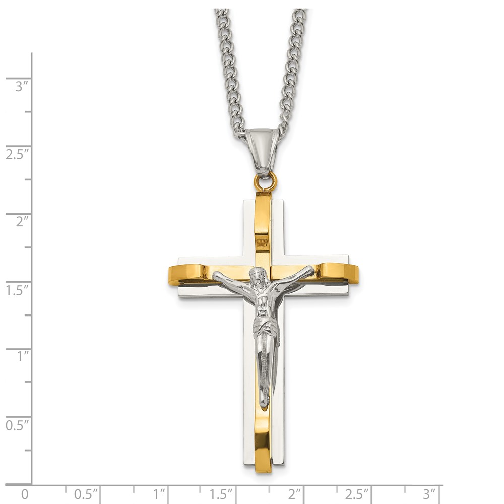 Chisel Stainless Steel Polished Yellow IP-plated Crucifix Pendant on a 24 inch Curb Chain Necklace
