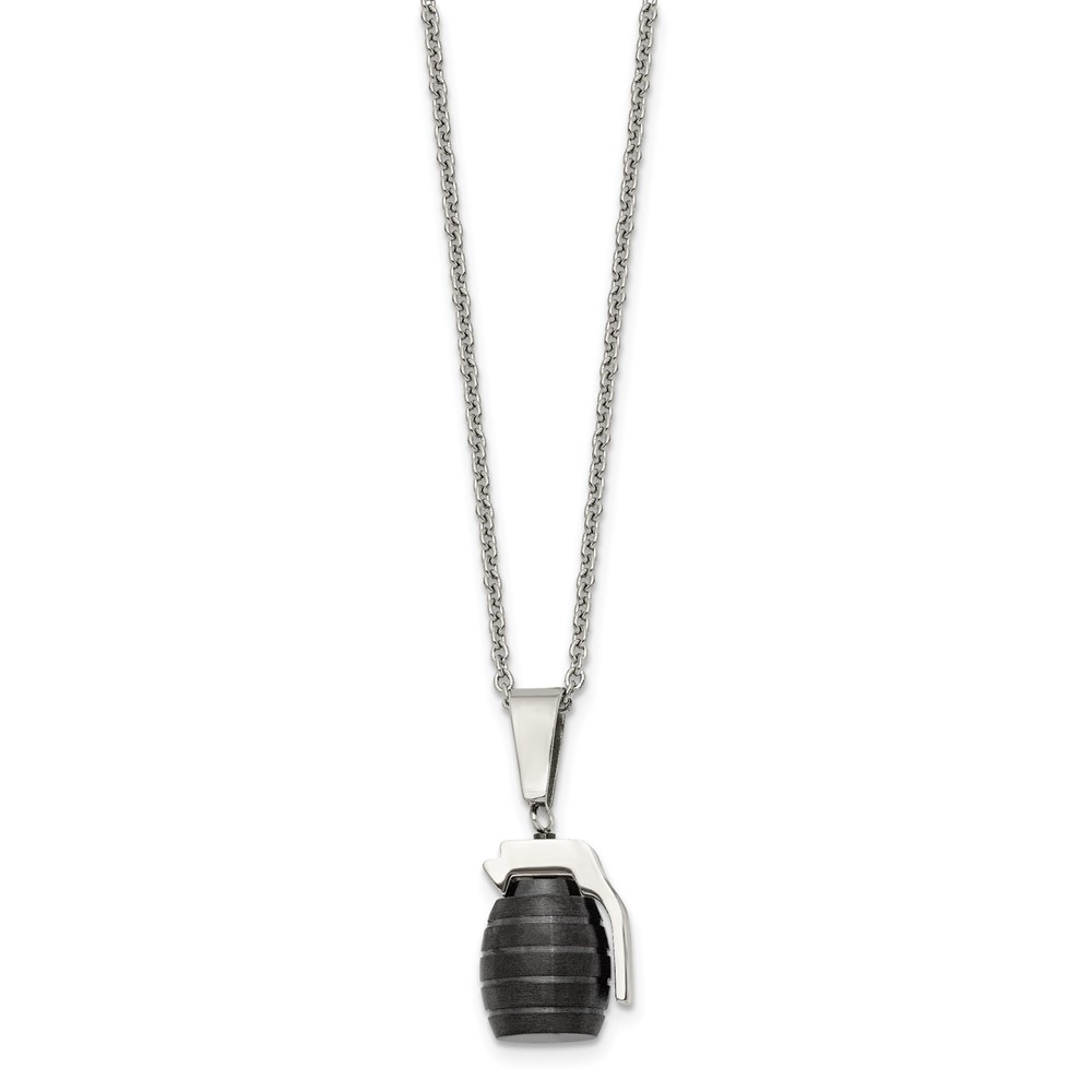 Stainless Steel Polished and Textured Black IP-plated Grenade Necklace