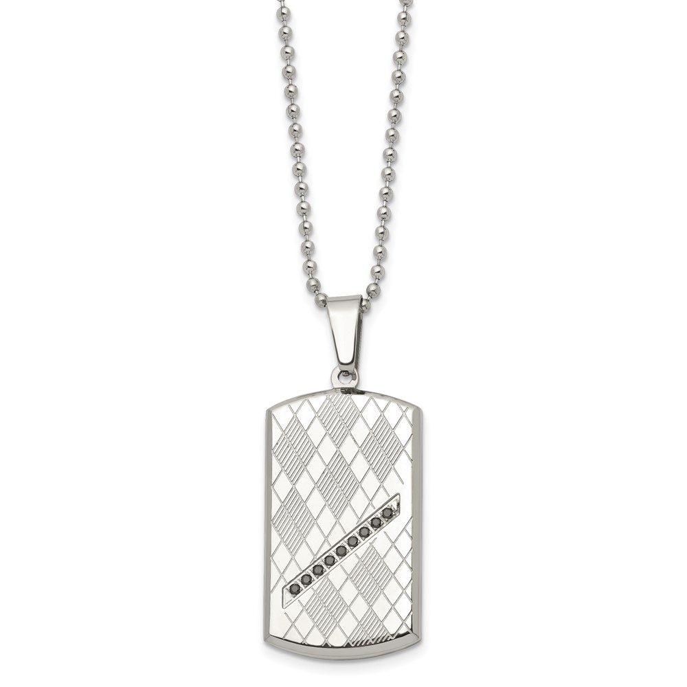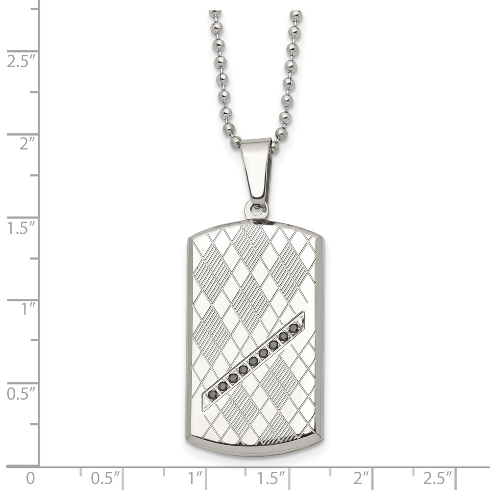 Stainless Steel 22in Polished & Textured w/Black CZ Dog Tag Necklace