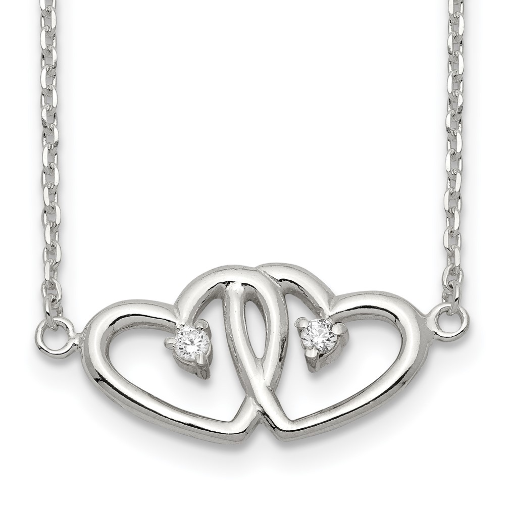 Sterling Silver Double Heart with CZ Necklace