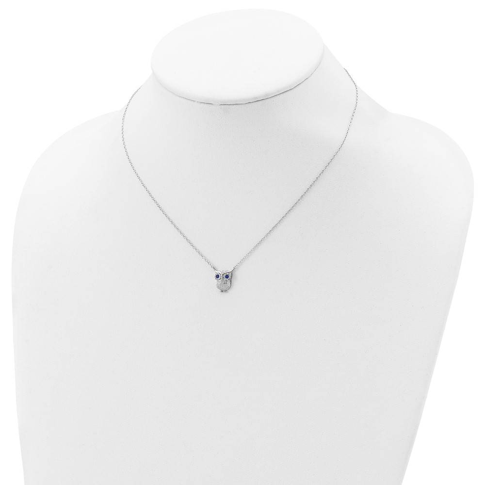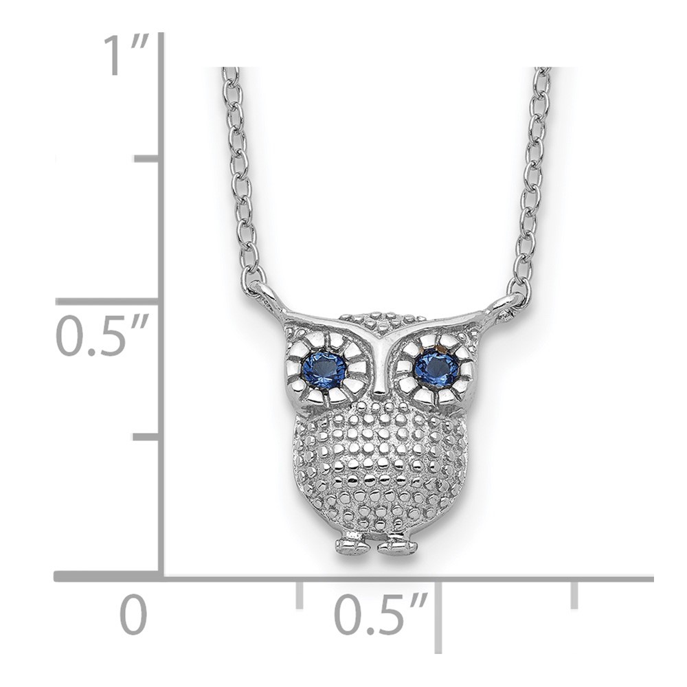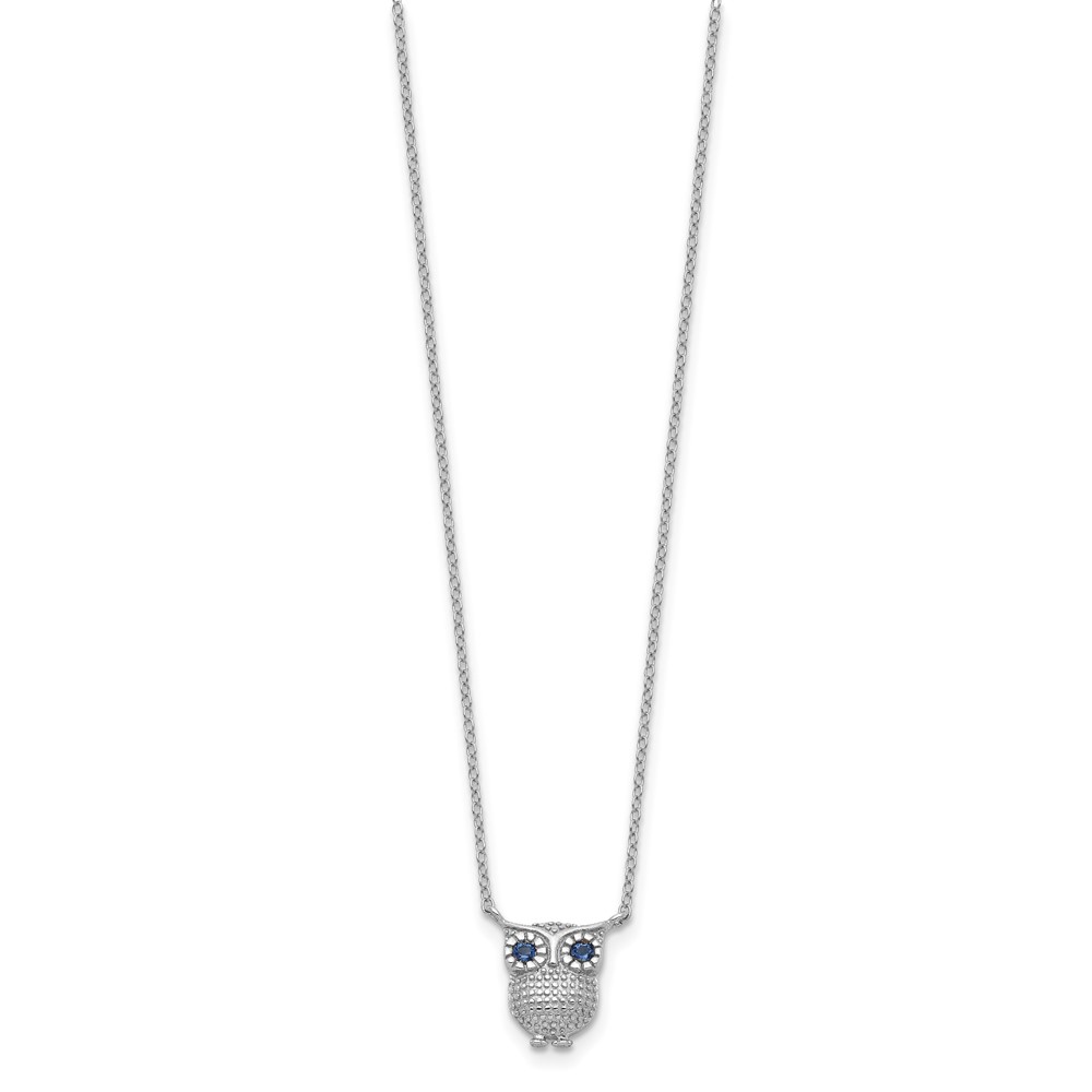 Sterling Silver RH-pltd Blue Glass Stone Owl 2in ext Necklace