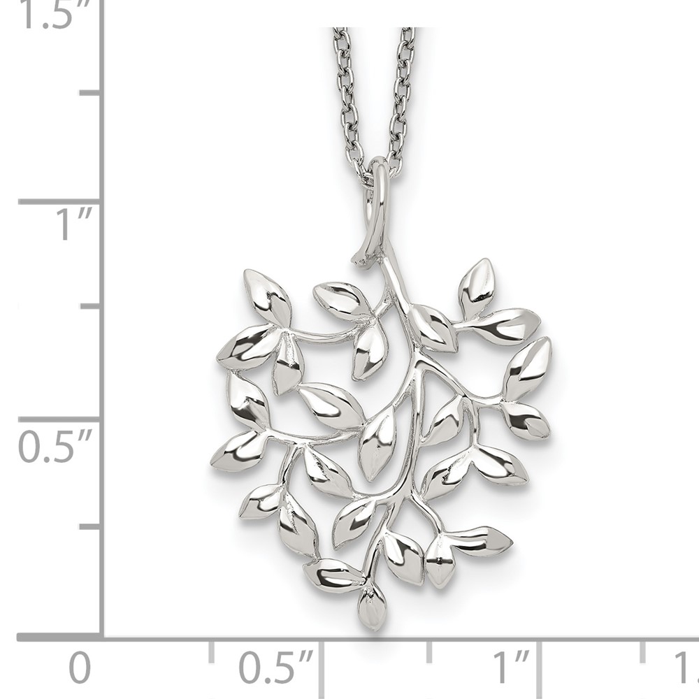 Sterling Silver Rhodium-plated Polished CZ Leaf Necklace