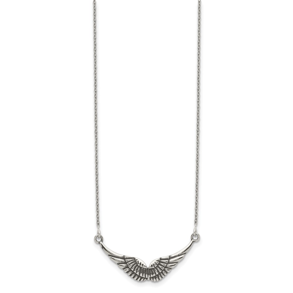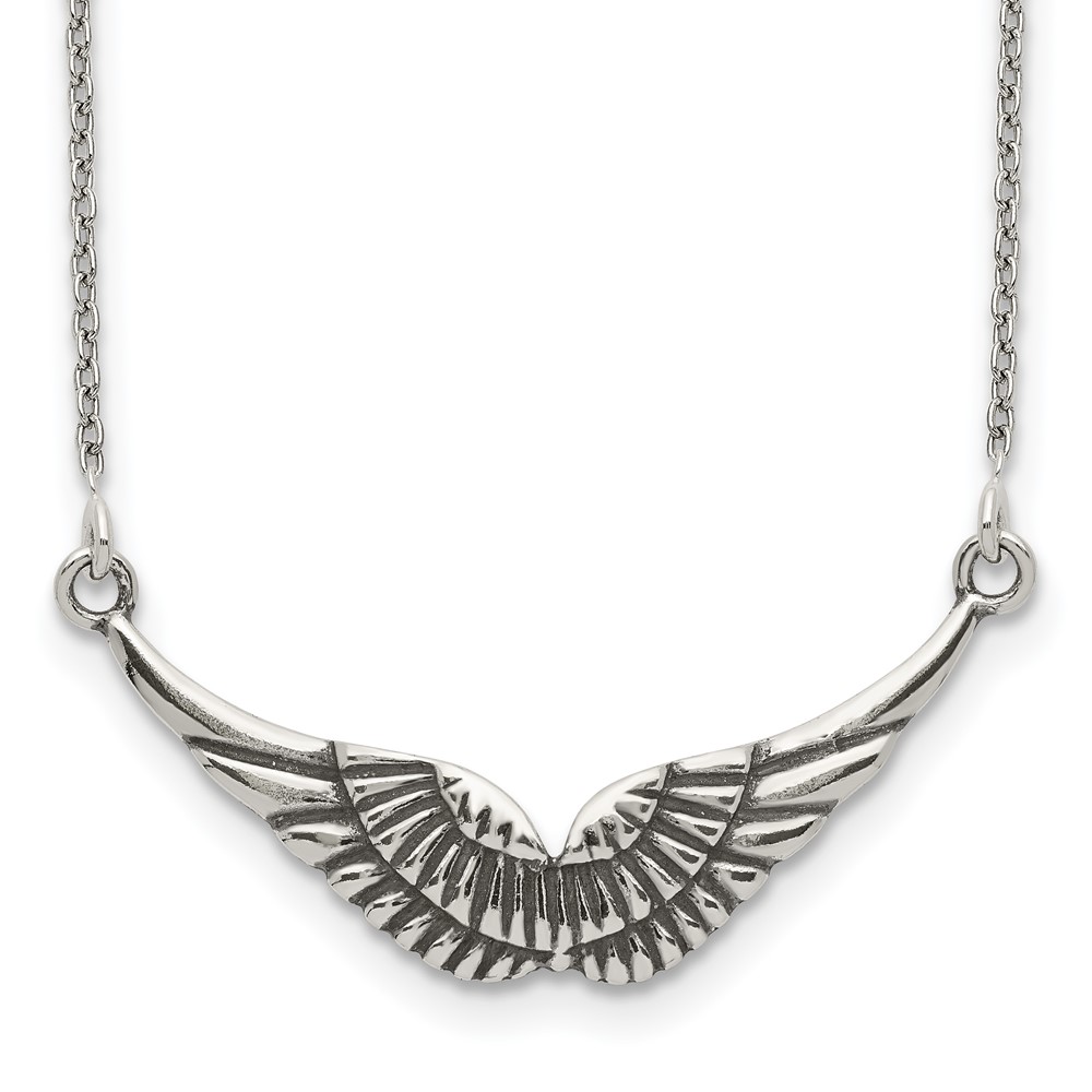 Sterling Silver Polished and Antiqued Wings Necklace