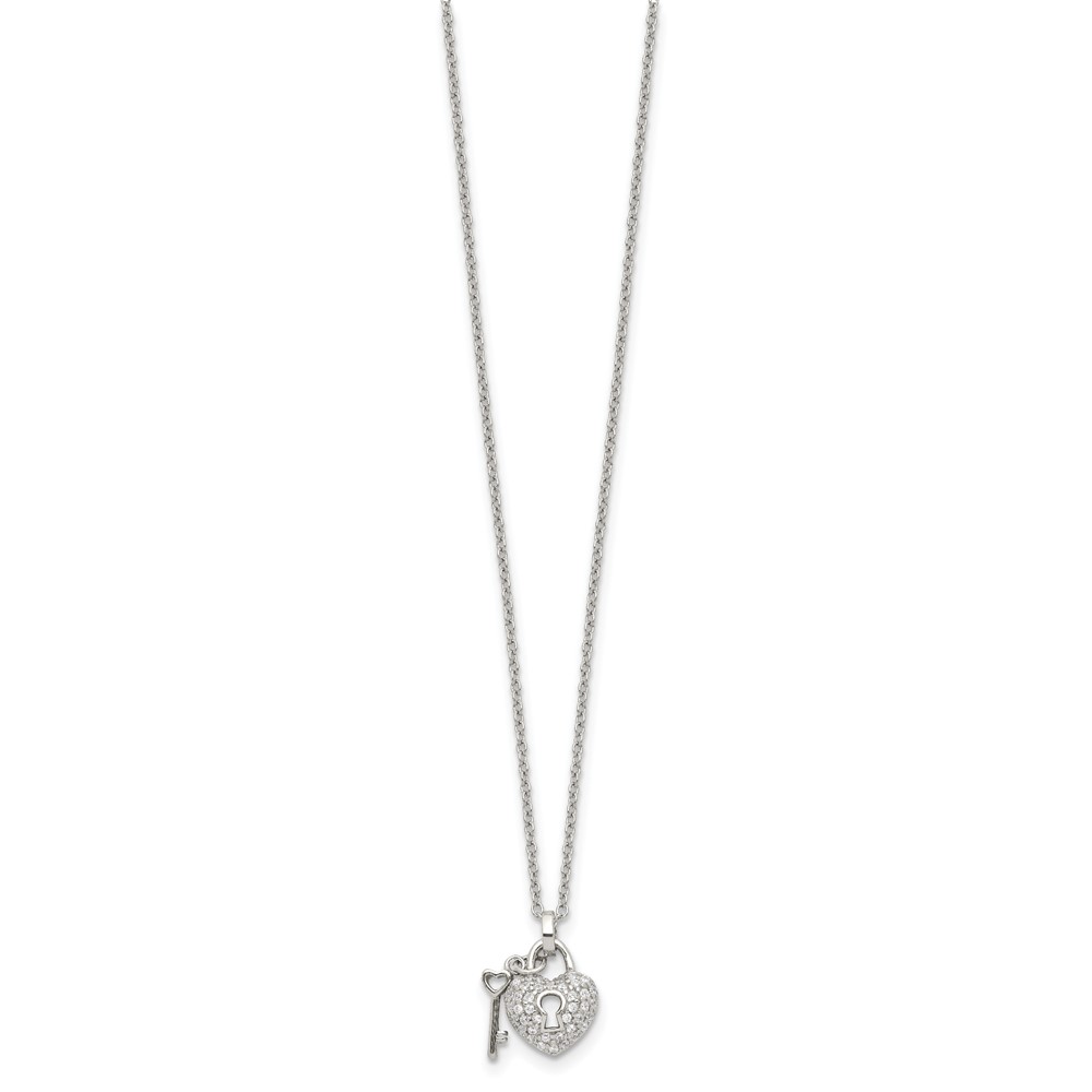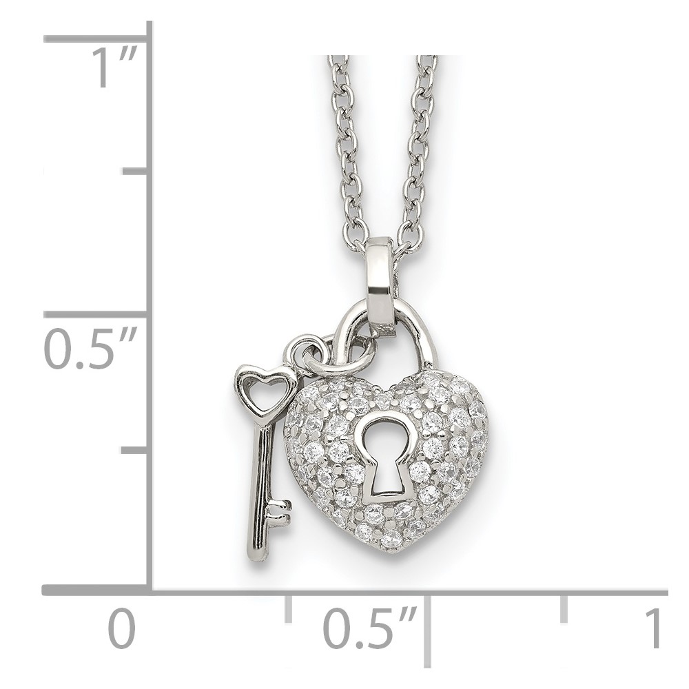 Sterling Silver Rhodium Plated Polished Key and CZ Lock 16.5 inch Necklace with 2 inch extension