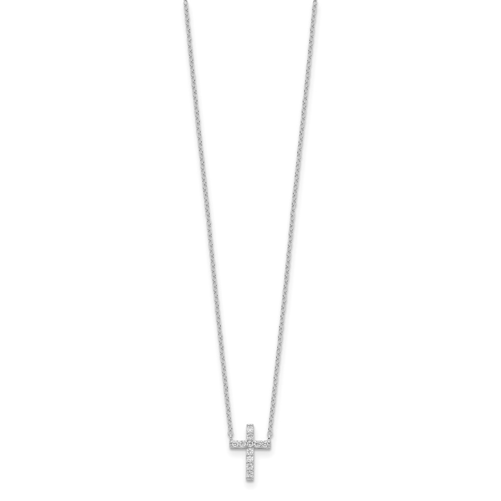 Sterling Silver Rhodium-plated CZ Cross w/2in ext. Necklace