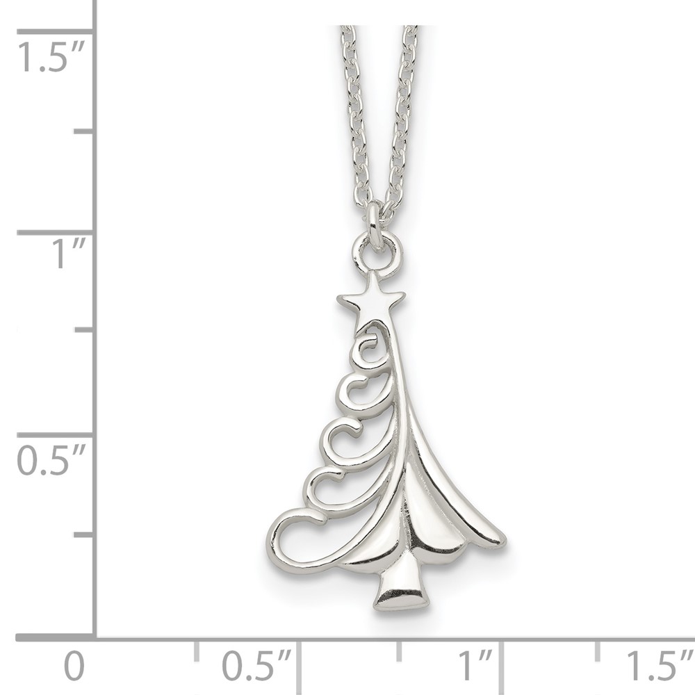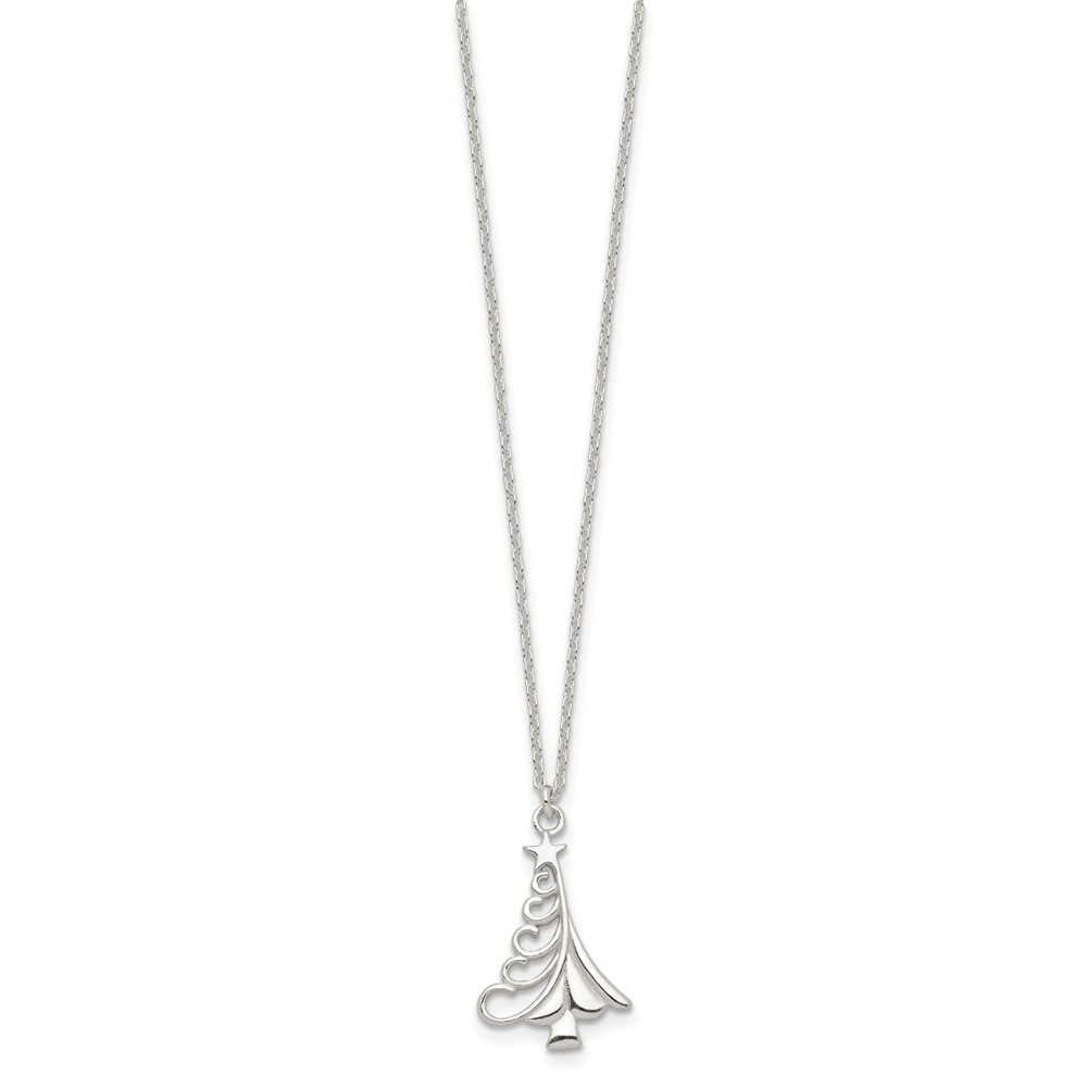 Sterling Silver Polished Christmas Tree Necklace