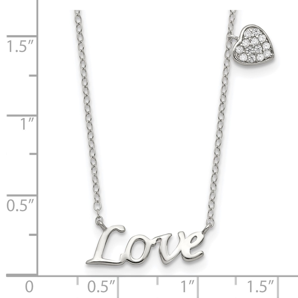 Sterling Silver Rhodium-plated Polished LOVE with CZ Heart Necklace