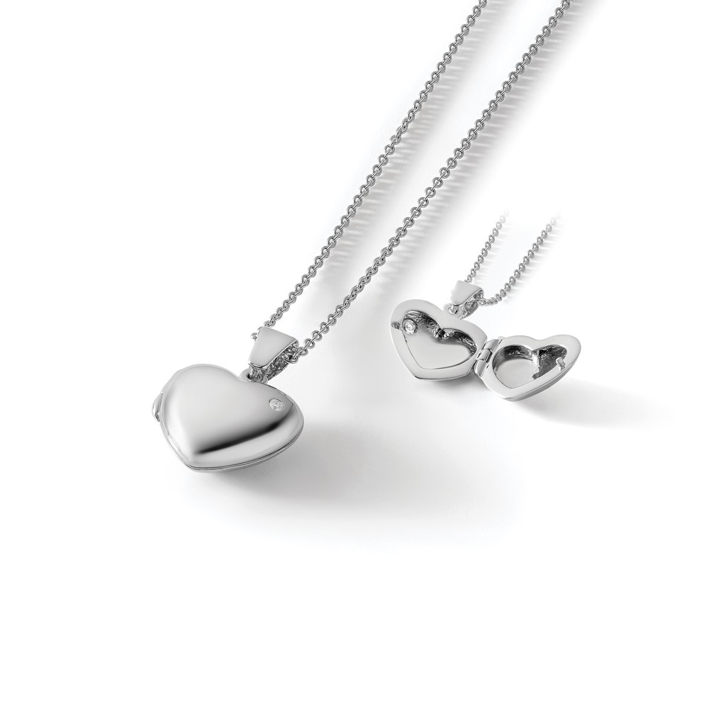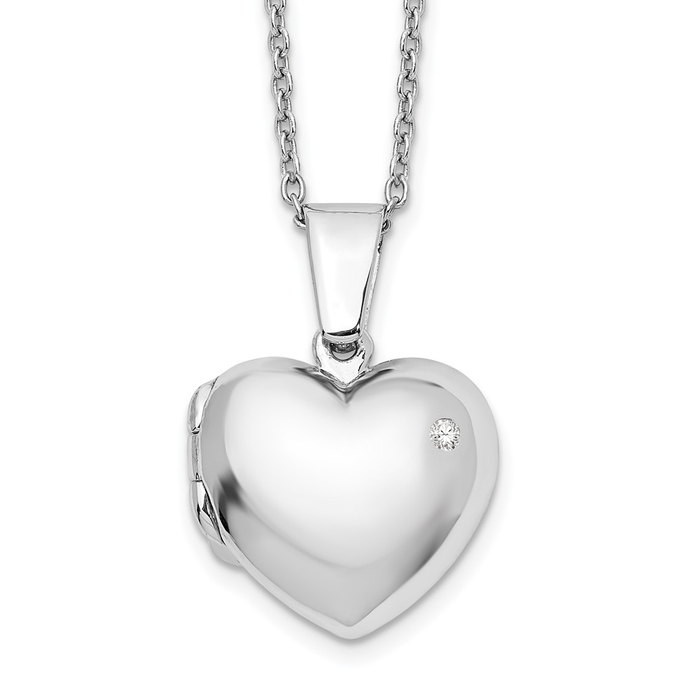 White Ice Sterling Silver Rhodium-plated 18 Inch Diamond Heart Locket Necklace with 2 Inch Extender
