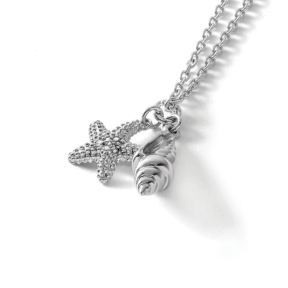 White Ice Sterling Silver Rhodium-plated 18 Inch Diamond Shell and Starfish Necklace with 2 Inch Extender