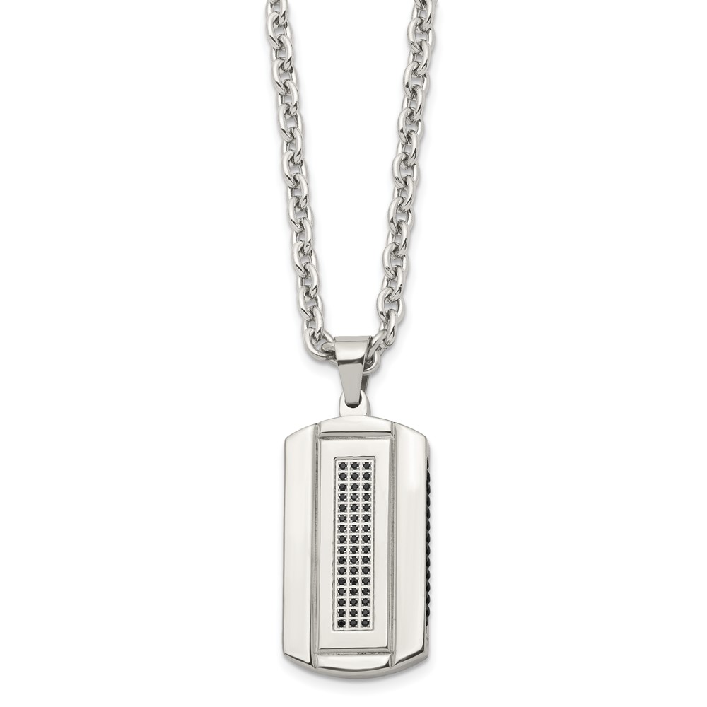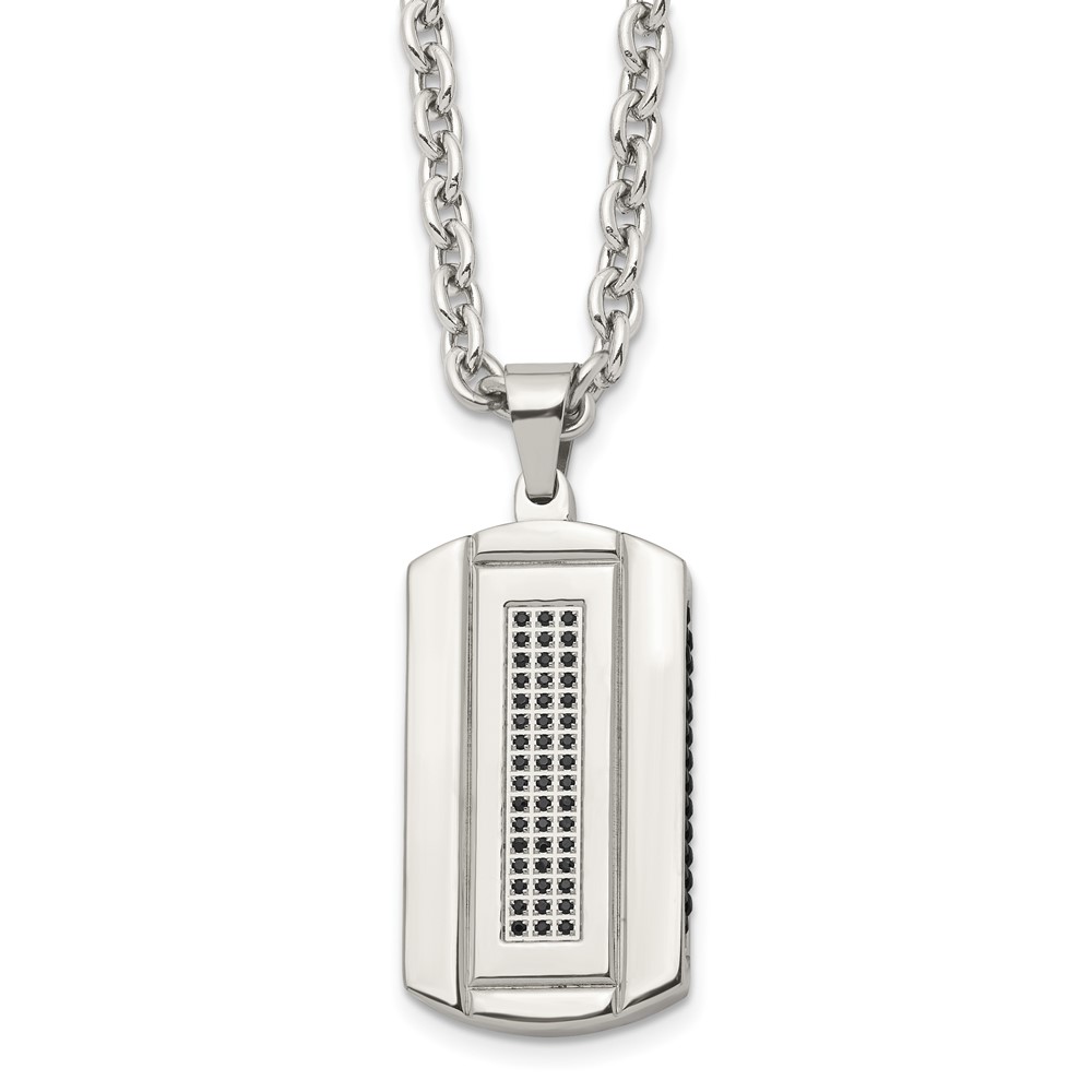 Chisel Stainless Steel Brushed and Polished Black IP-plated with Black CZ Dog Tag on a 24 inch Cable Chain Necklace