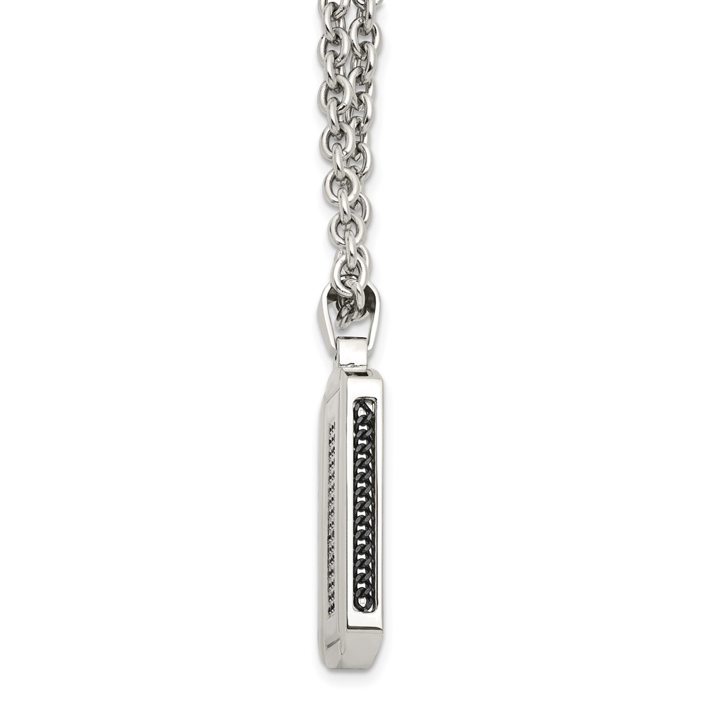Chisel Titanium Polished with Black Carbon Fiber Inlay Dog Tag 24 inch Necklace