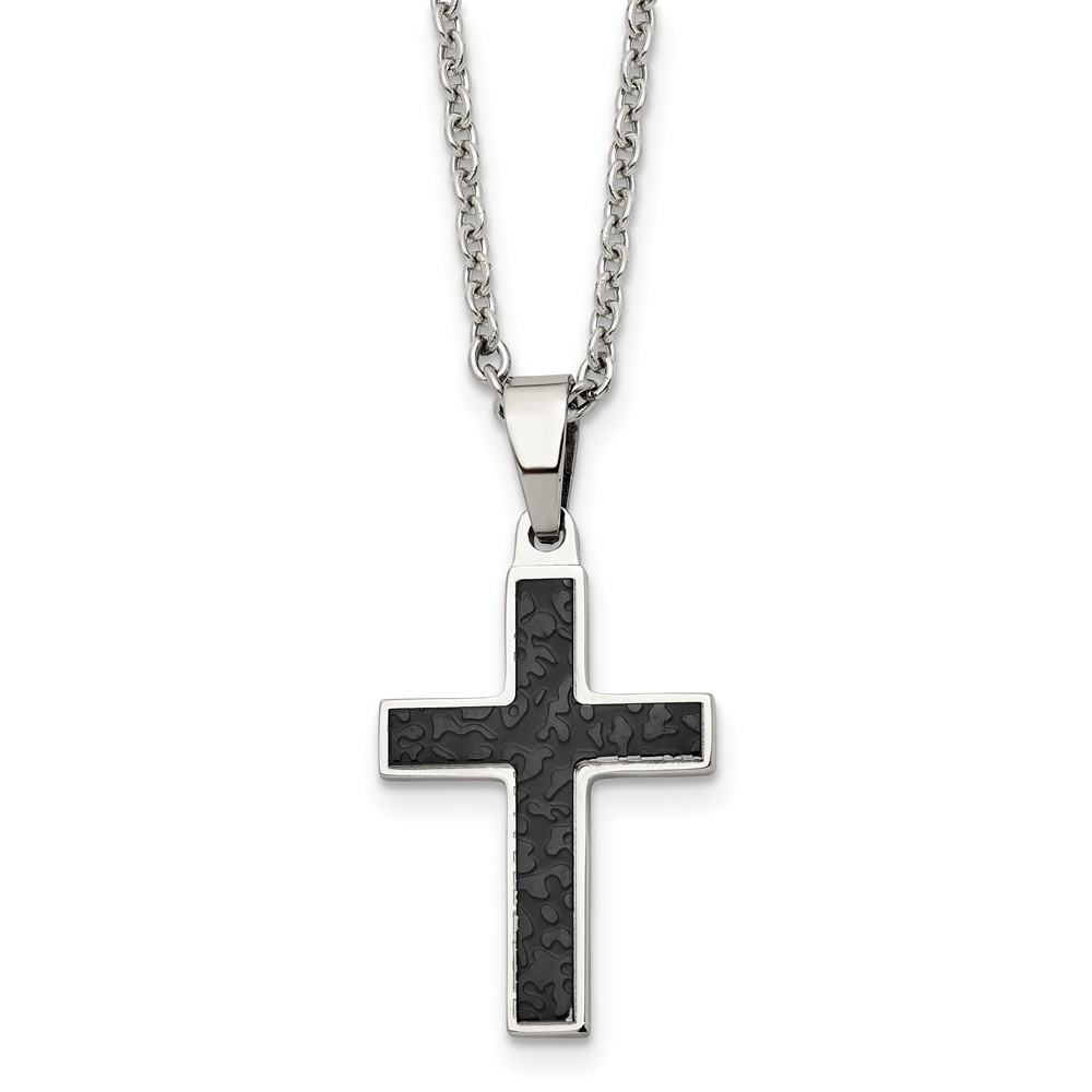 Chisel Stainless Steel Polished and Textured Black IP-plated Cross Pendant on a 24 inch Cable Chain Necklace