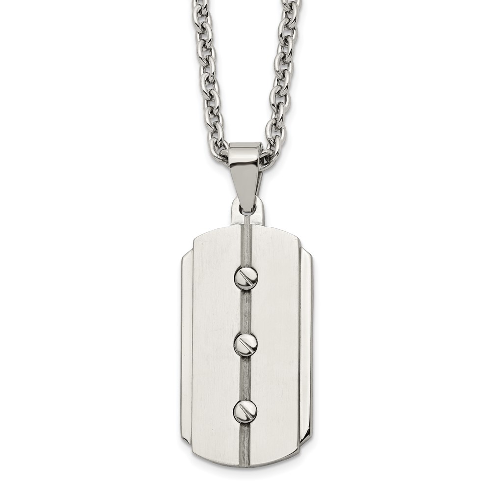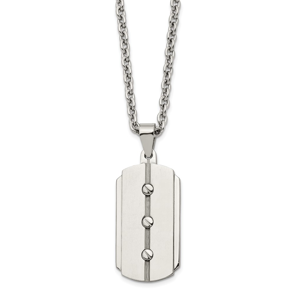Stainless Steel 24in Brushed & Polished 3 Screw Design Dog Tag Necklace