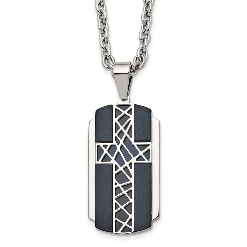 Stainless Steel Brushed and Polished Black IP-plated Cross 24in Necklace