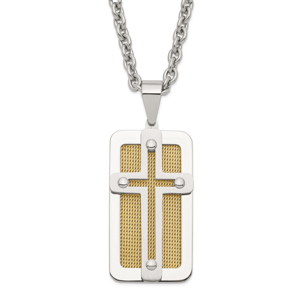 Stainless Steel Polished Yellow IP-plated Wire Inlay Cross Necklace