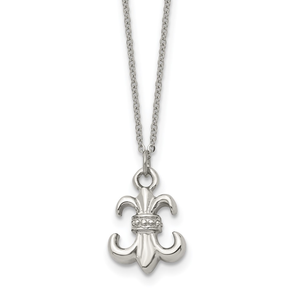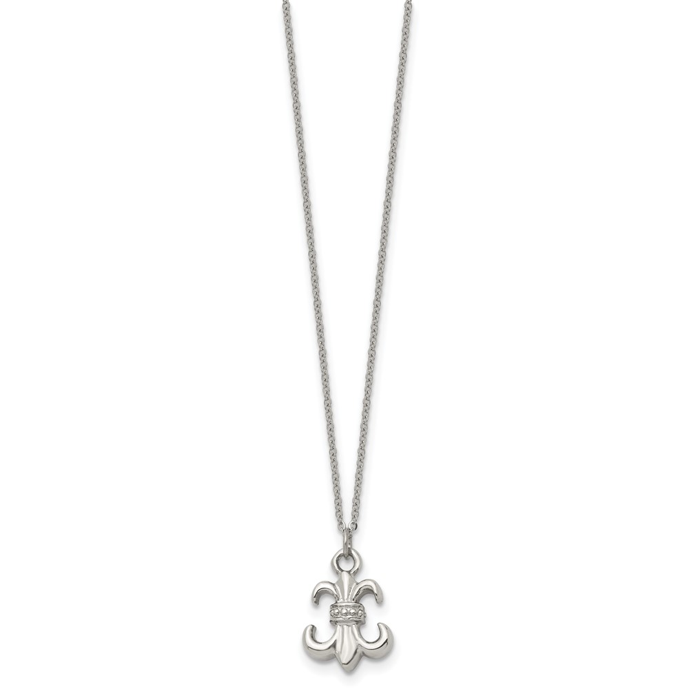 Stainless Steel Polished Fleur de lis 18.75in w/2 ext Necklace