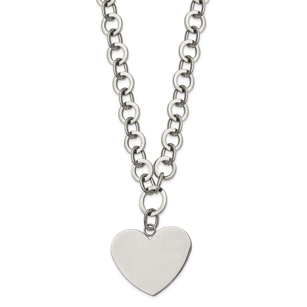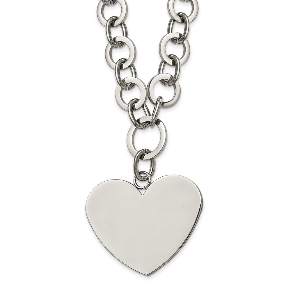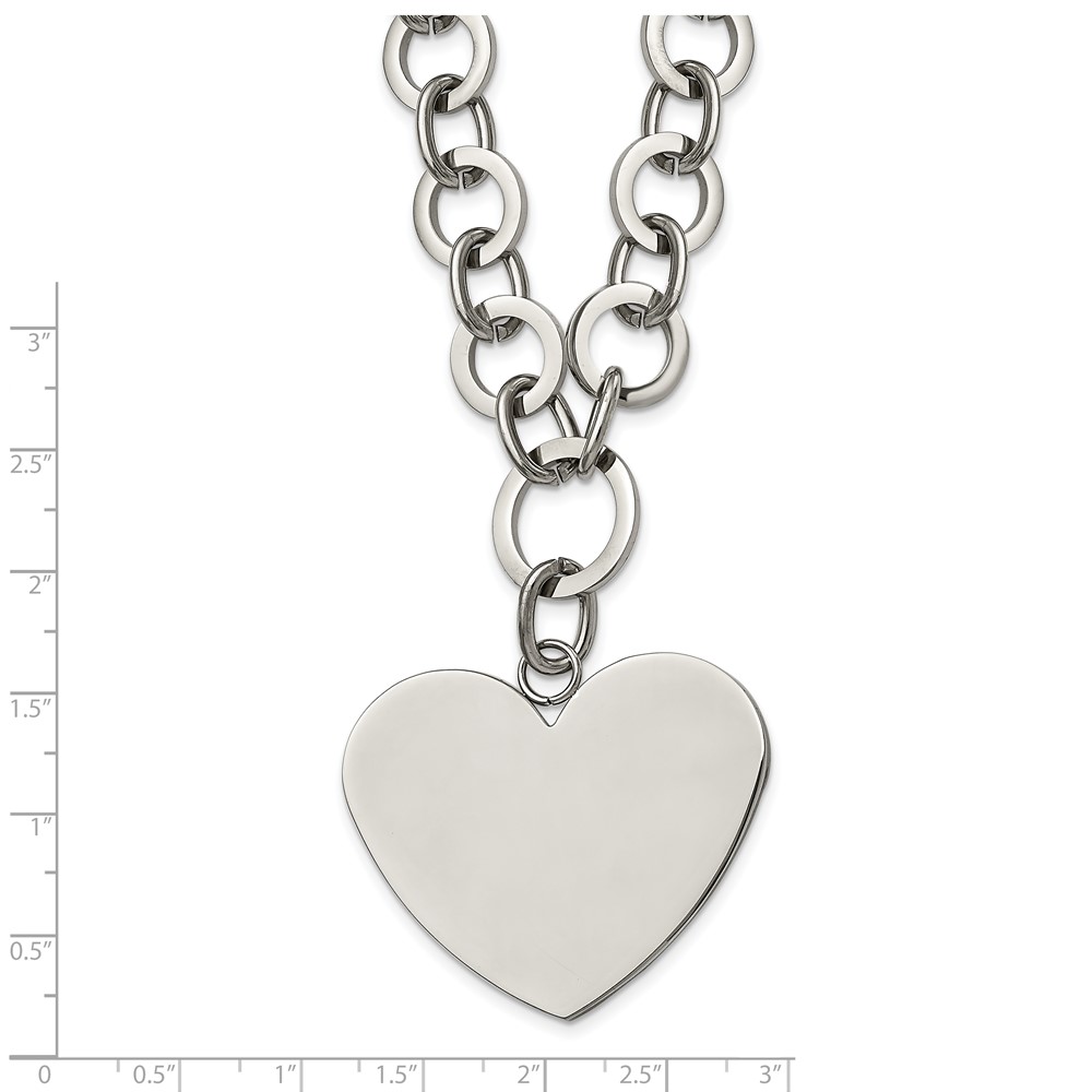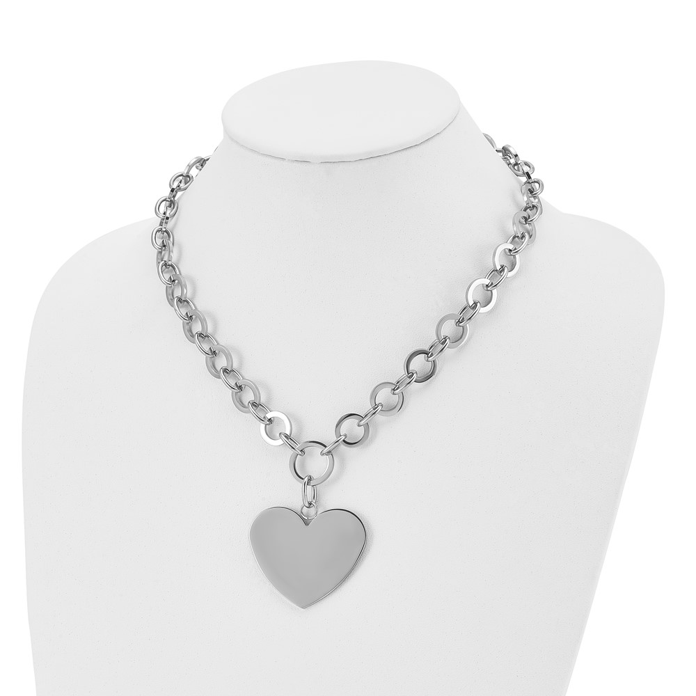 Stainless Steel Polished Large Heart 17.25in w/1.75in ext Necklace