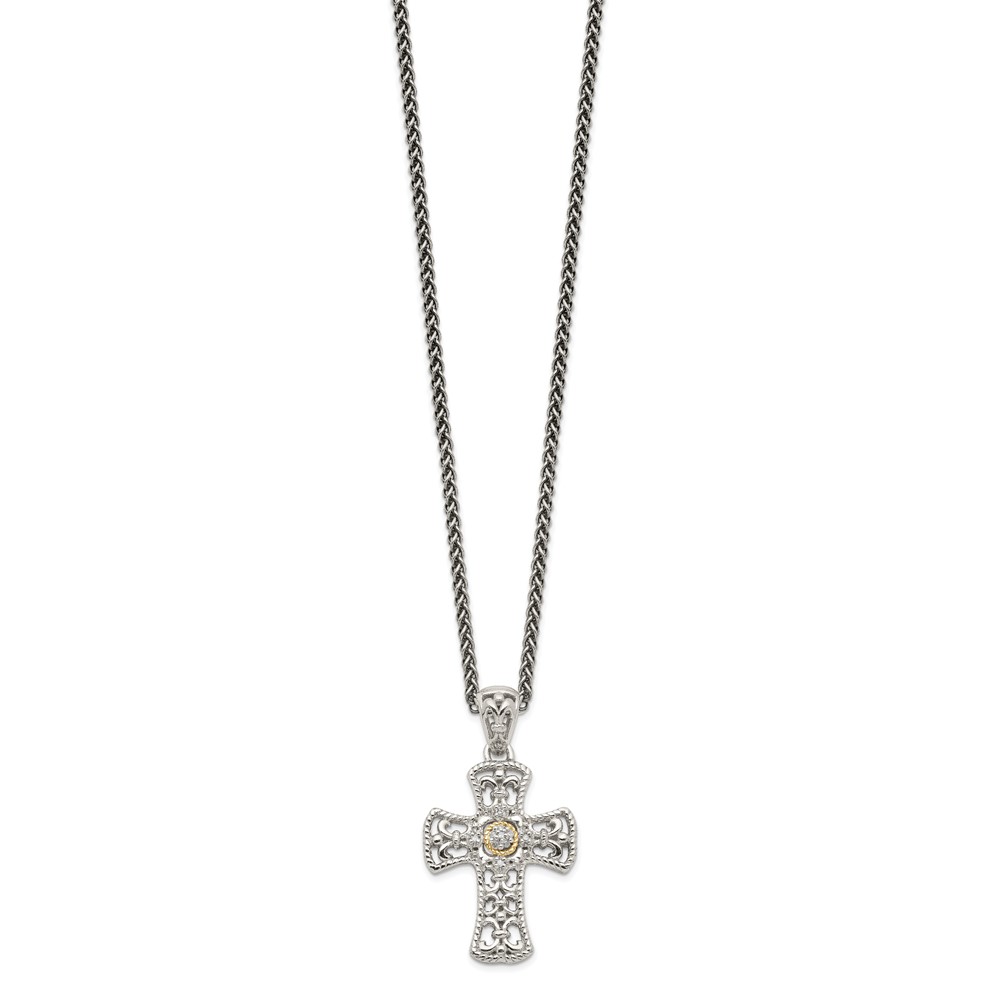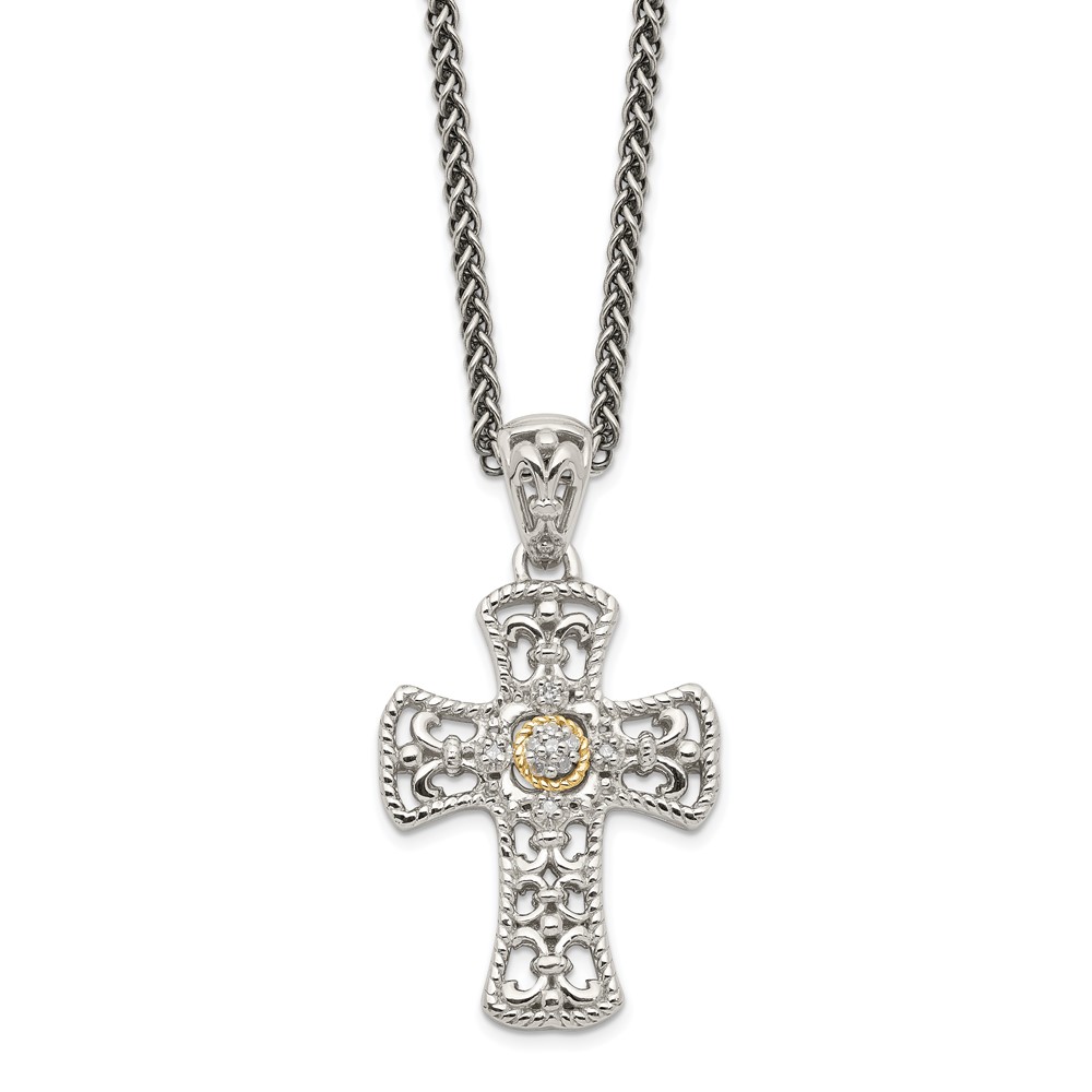 Shey Couture Sterling Silver with 14K Accent 18 Inch Diamond Cross Necklace