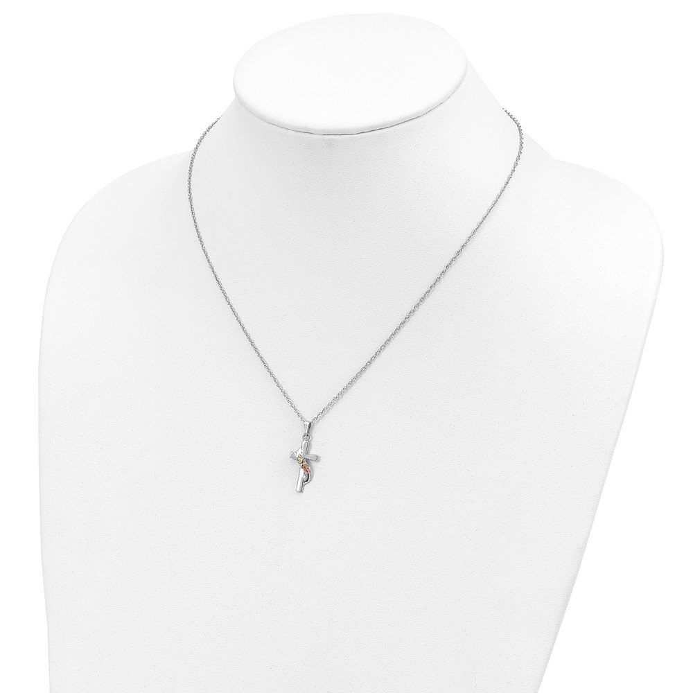 Landstrom's Mt. Rushmore Black Hills Sterling Silver 12K Gold Accents Cross 18 inch Spring Ring Clasp Necklace