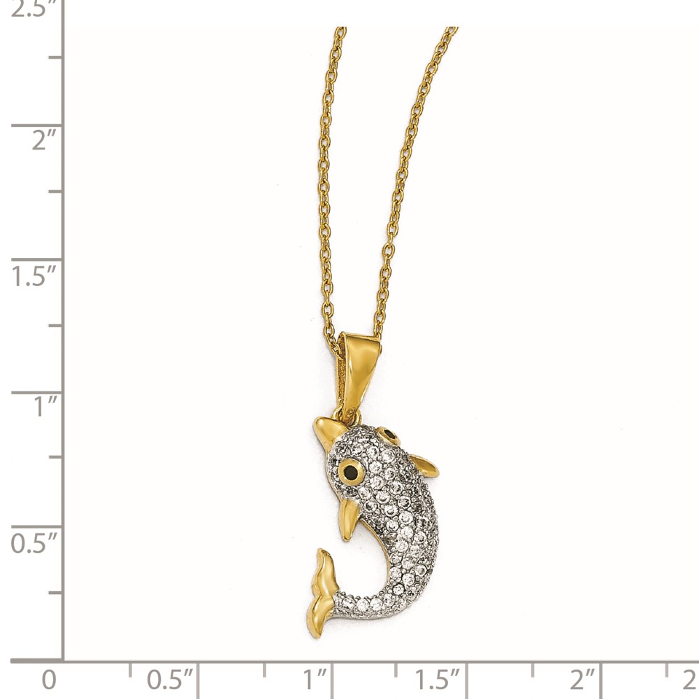 Cheryl M Sterling Silver Gold-plated w/ Rhodium CZ Dolphin 18in Necklace