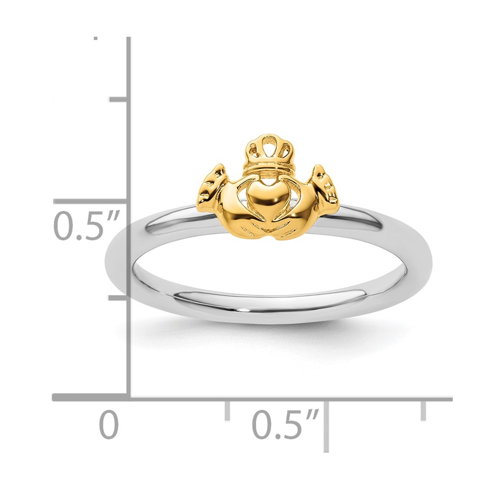 Sterling Silver Stackable Expressions Yellow-plated Claddagh Ring