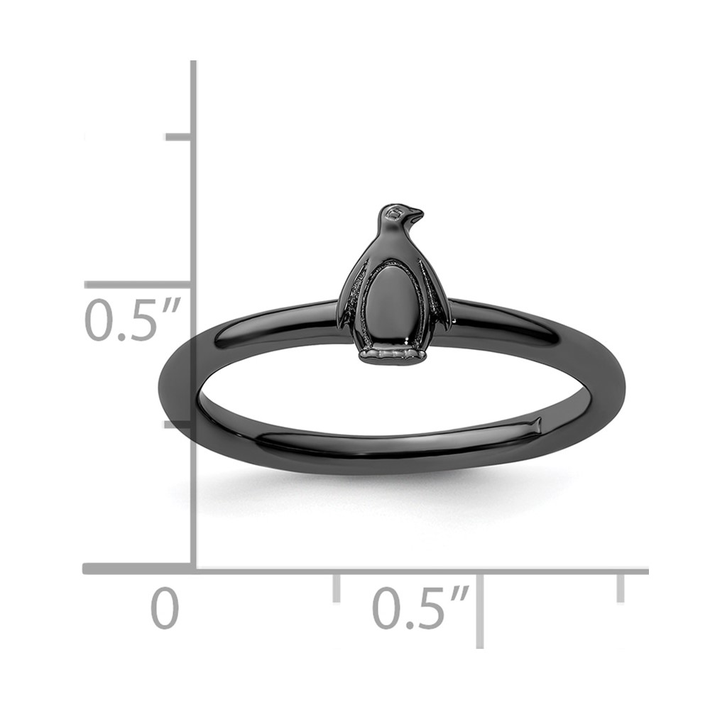 Sterling Silver Stackable Expressions Black-plated Penguin Ring