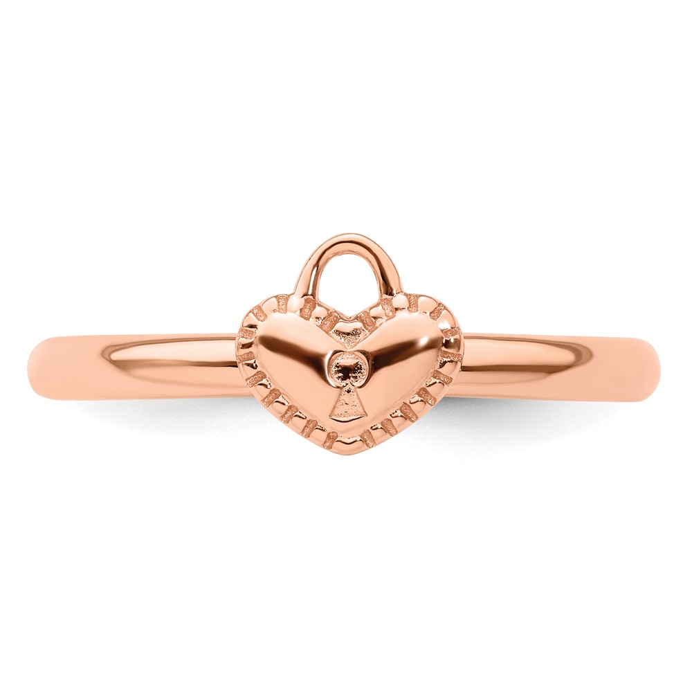 Sterling Silver Stackable Expressions Pink-plated Heart Padlock Ring