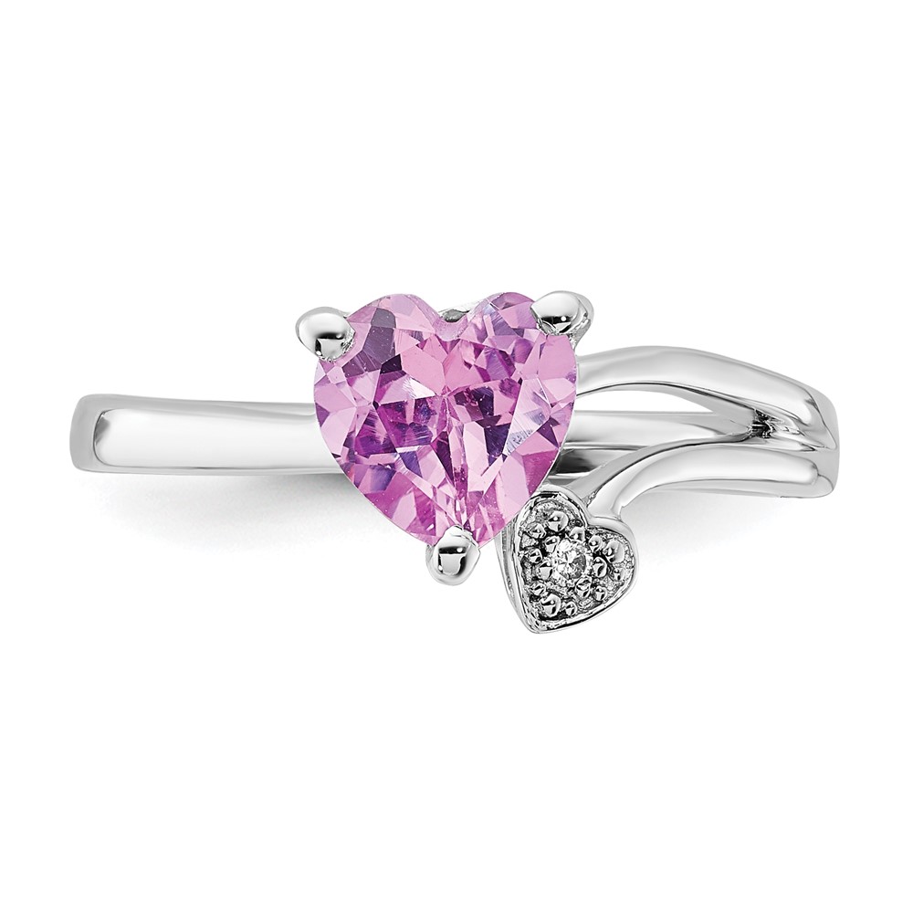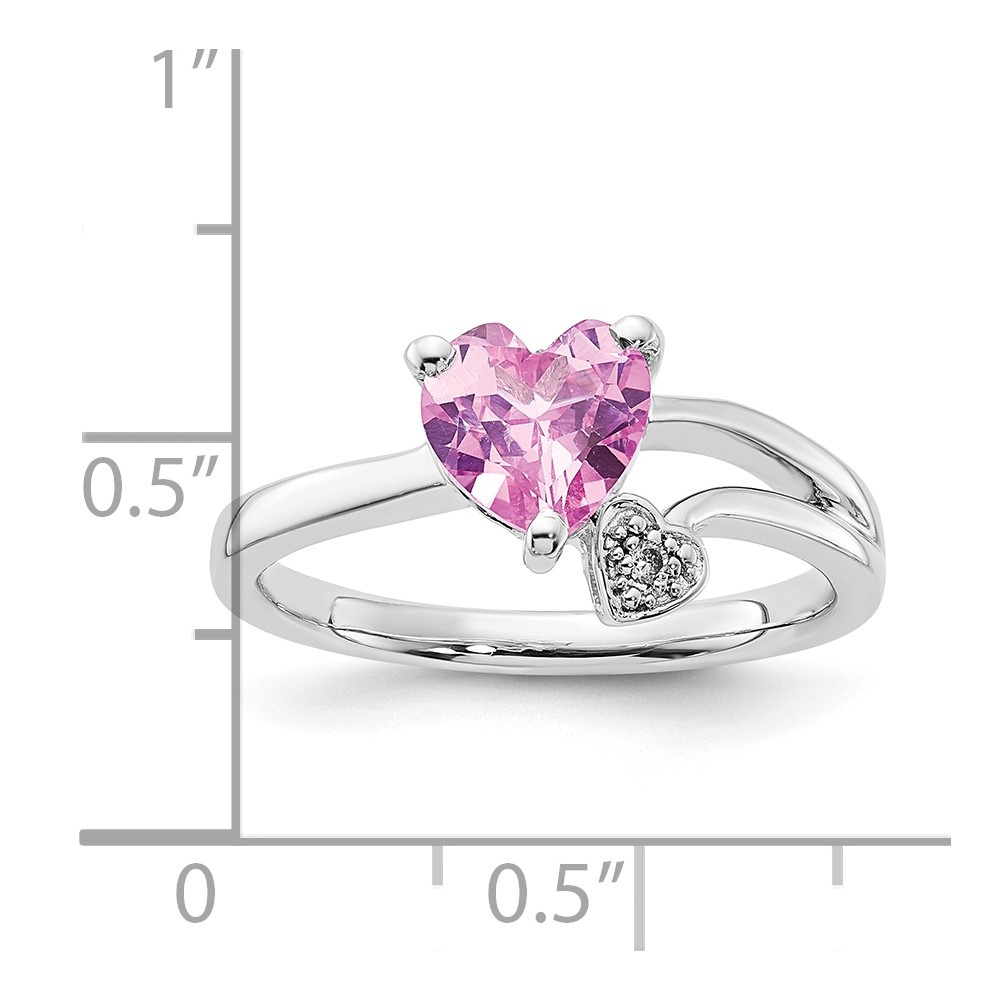 Sterling Silver Created Pink Sapphire and Diamond Heart Ring