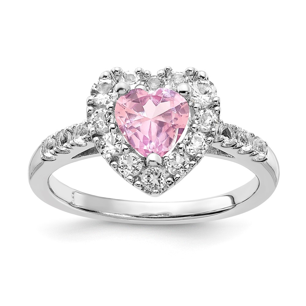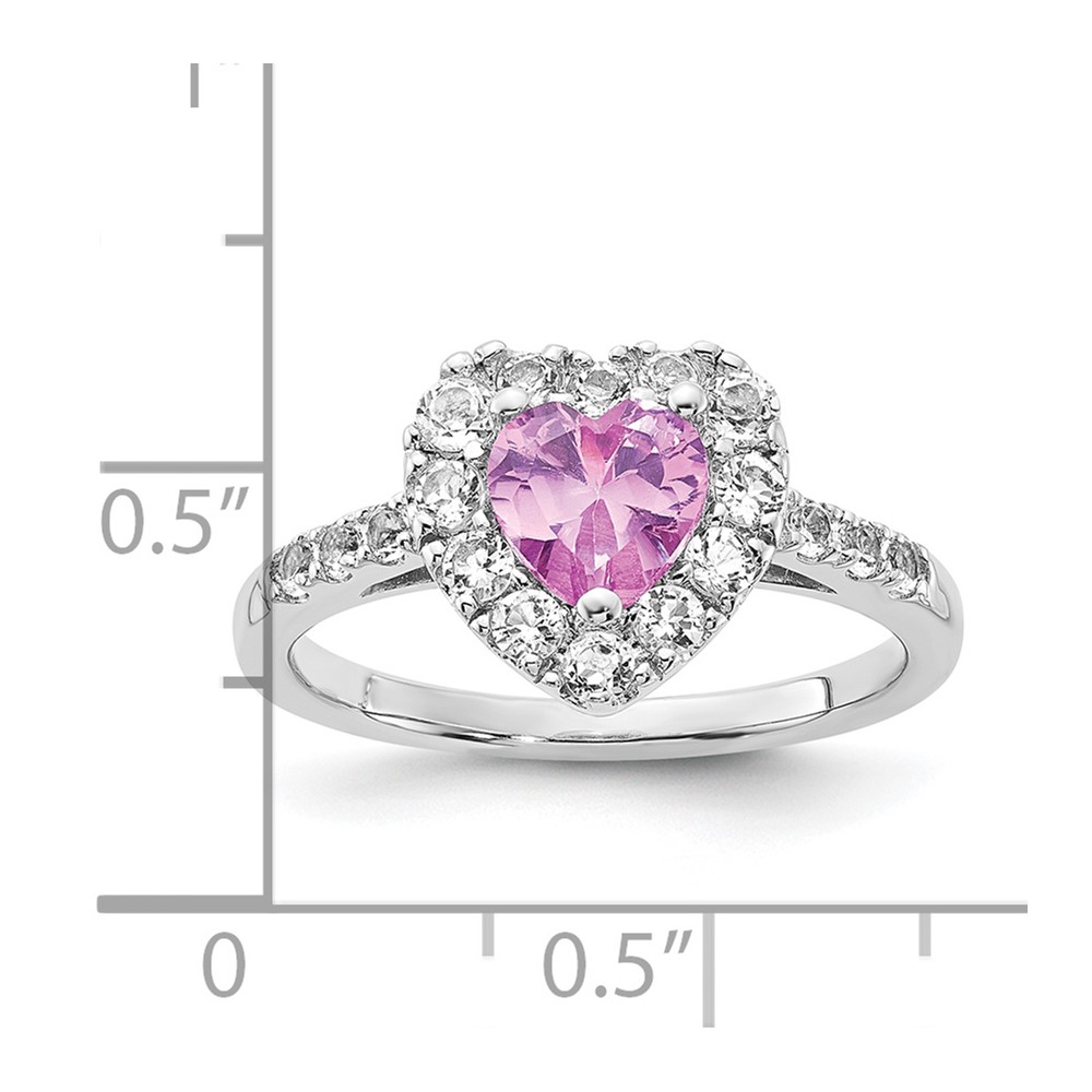 Sterling Silver Created Pink Sapphire and White Topaz Heart Ring