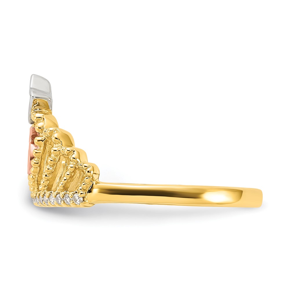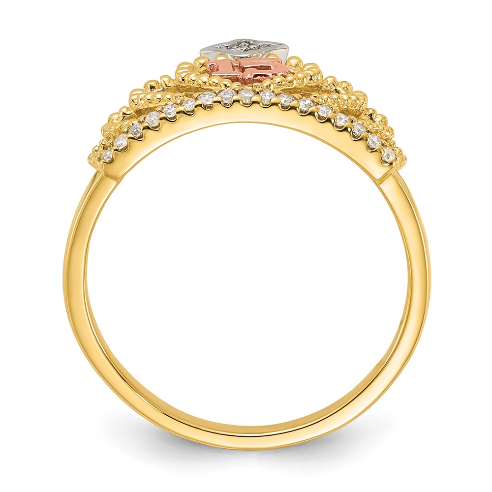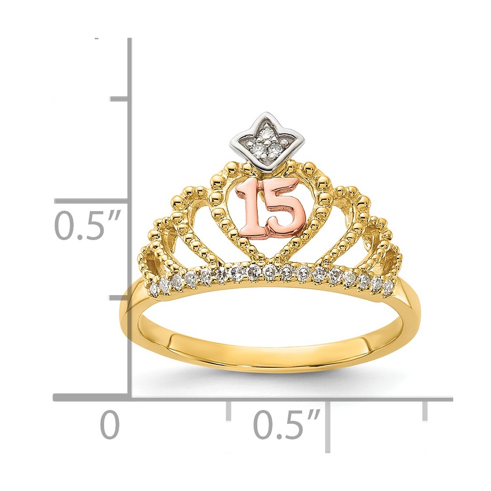 10k Tri-Color Polished & Beaded Diamond 15 Quinceanera Crown Ring