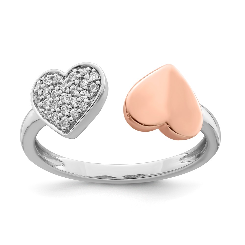 Sterling Silver w/Rose Plate CZ Heart Ring