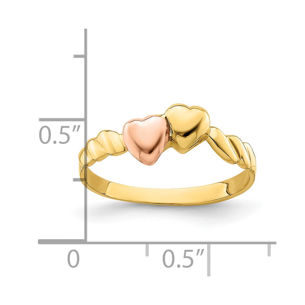 14k Two-Tone Two Hearts Ridged Ring